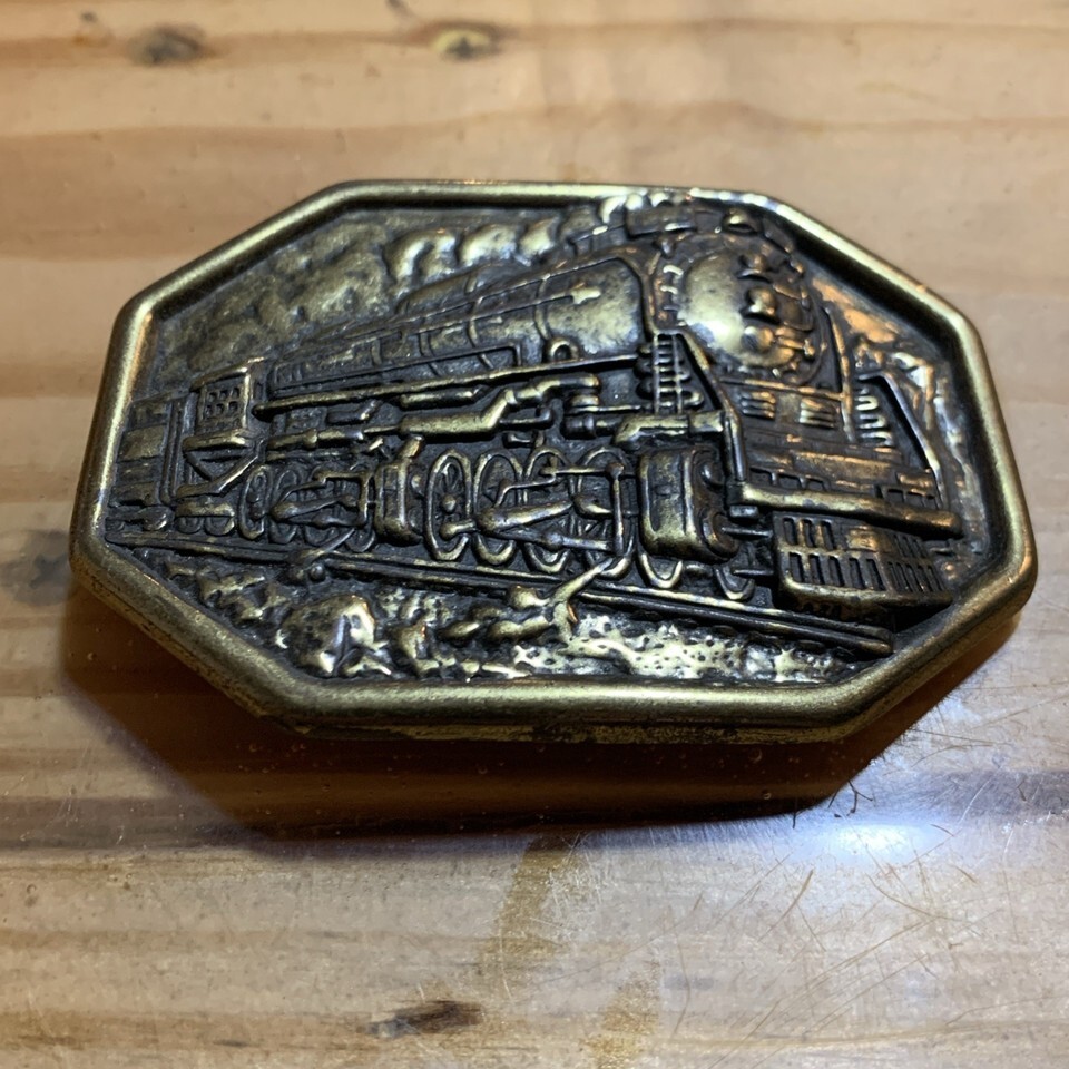 The UOAV Belt Buckle is a vintage accessory made from brass, featuring a unique design of a locomotive train. The gold color adds a touch of elegance to the piece, making it a stylish and eye-catching addition to any vintage-inspired outfit. Perfect for those with a love for railroads and train enthusiasts, this belt buckle is a specialty item that adds a personalized touch to any wardrobe.