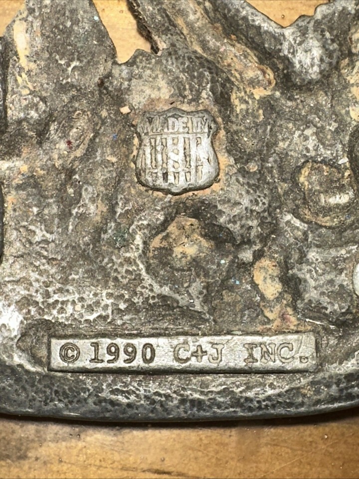 C & J Pewter Oval Belt Buckle Bald Eagle Fish Elk Wildlife UAA 1990 Vintage