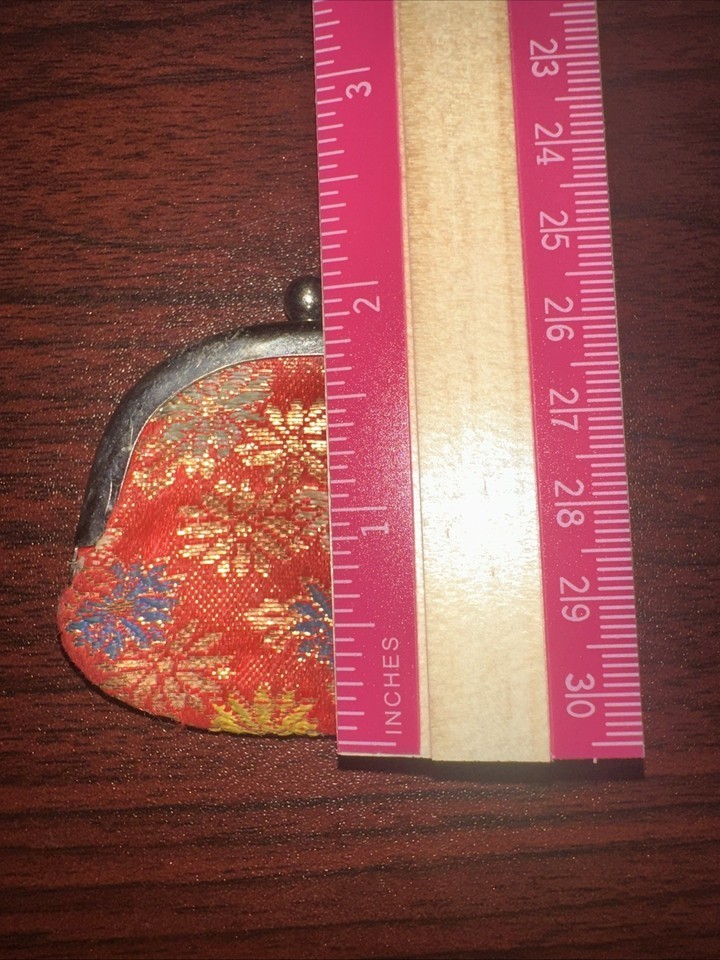 Vintage Authentic Japaneese Lucky Coin Bag Purse W/ Box Red Floral Pattern