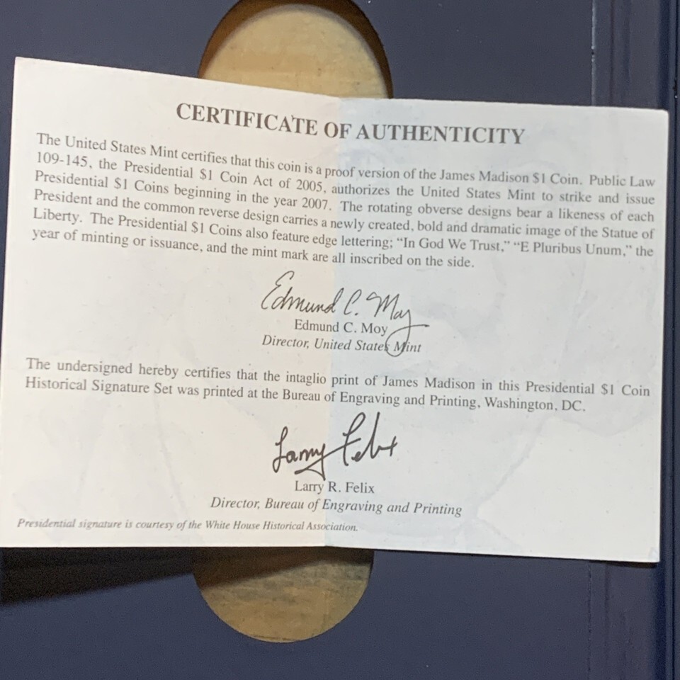 2007 US Mint JAMES MADISON 4th President Presidential Dollar PROOF Coin
