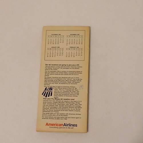 This listing is for a single American Airlines Timetable booklet. This timetable was effective on November 1, 1989. It features passenger flight schedules, passenger information, and flight itineraries. The cover is clean with minor wear. The booklet is complete. There are 282 pages. There are no missing or torn pages. The pages are clean.