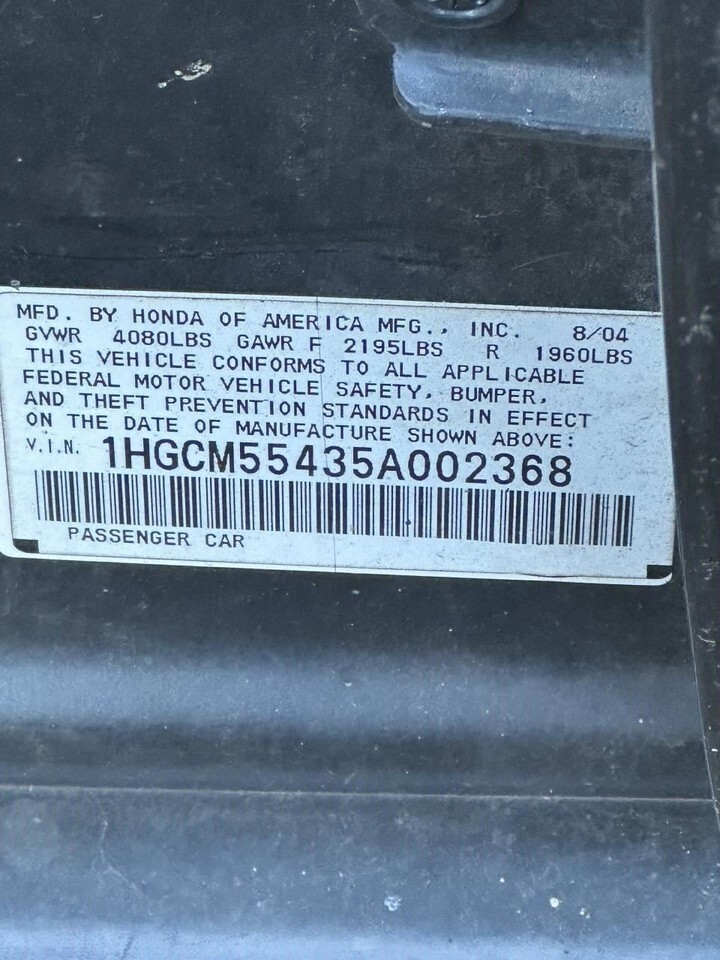 ACCORD 05 (cluster), 2.4L, Cpe, LX, MT