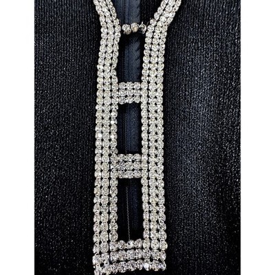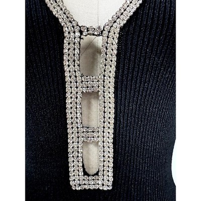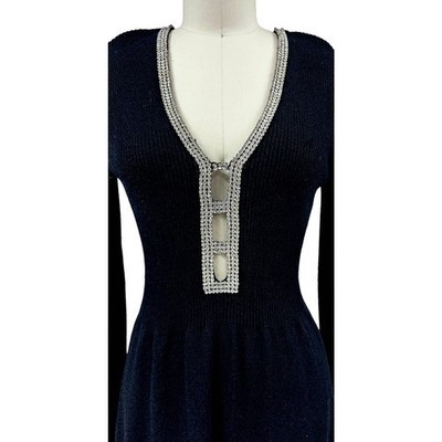 1980s VTG Black Knit Sweater Dress Rhinestone Cut Out Neckline Sexy 80s