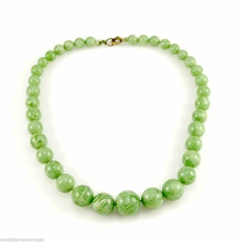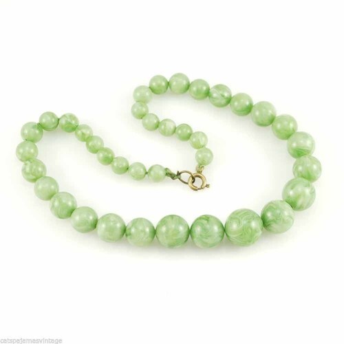 Vintage Necklace Celluloid Round Jadeite Beads 1930S