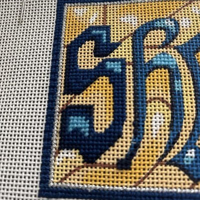 The Shalom Needlepoint Canvas by Danji Designs is a hand embroidery pattern featuring a single pattern design. Made in the United States, this needlepoint canvas comes with thread already on stretchers, making it easy for crafters to get started on their project. The ?S? was started. Perfect for those interested in needlecrafts and embroidery, this product provides a beautiful and unique design for creating a stunning hand-stitched piece of art.