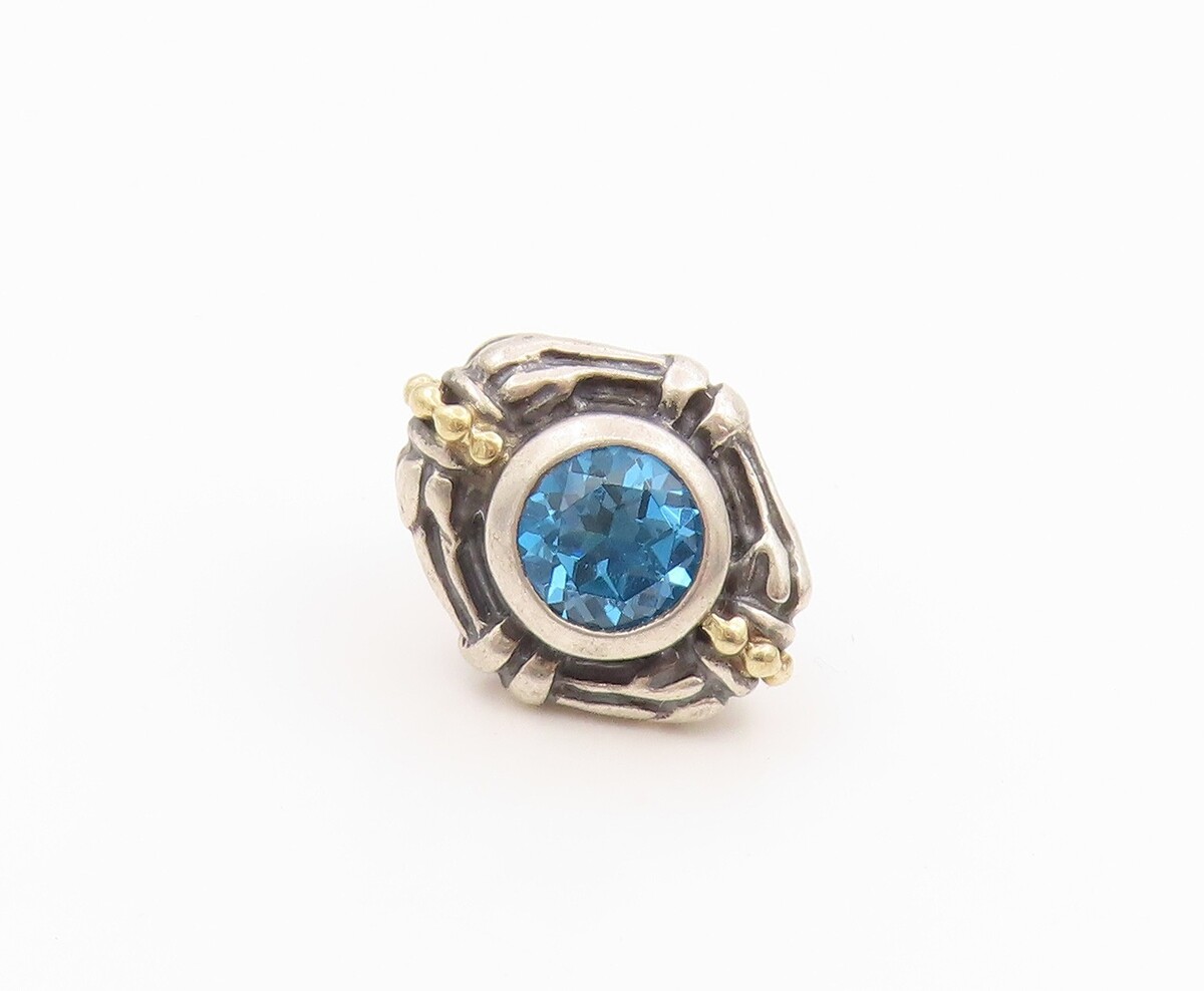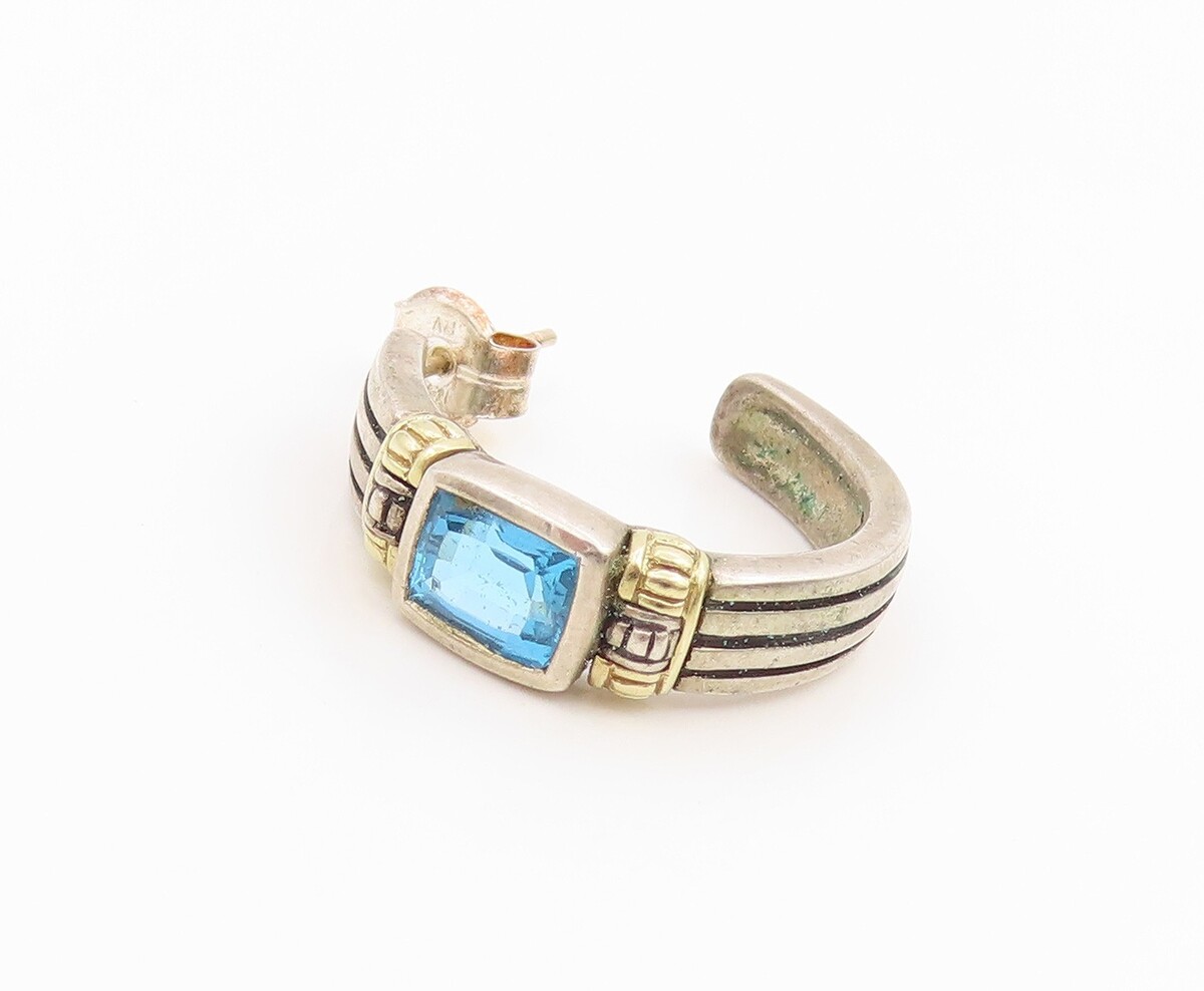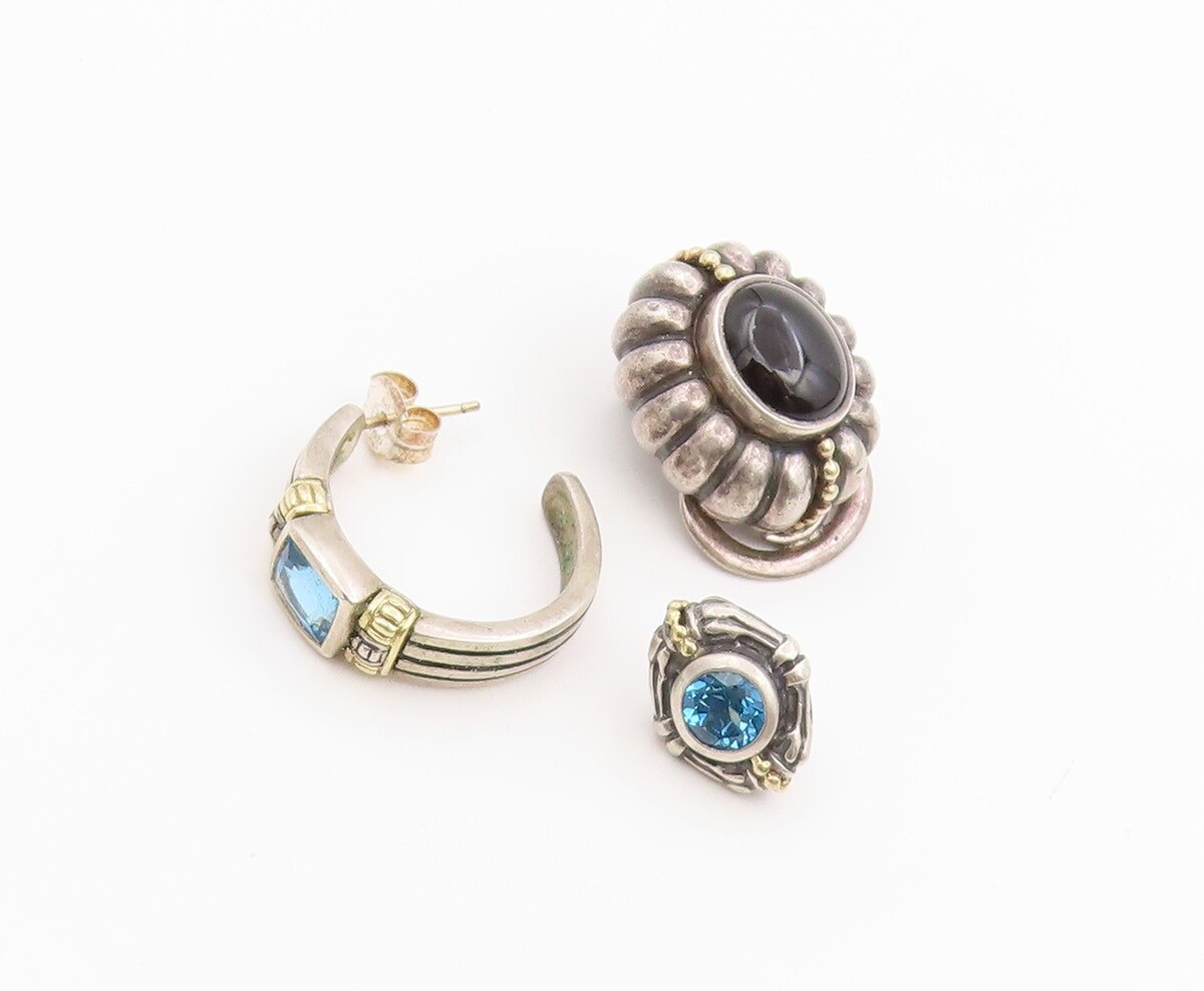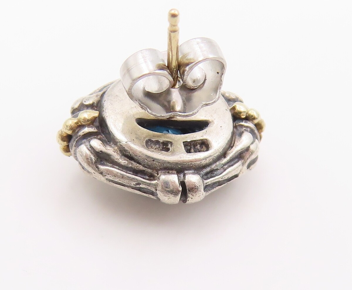 14K Gold & 925 Sterling Silver Vintage Earrings LAGOS CAVIAR Gemstone EG14301