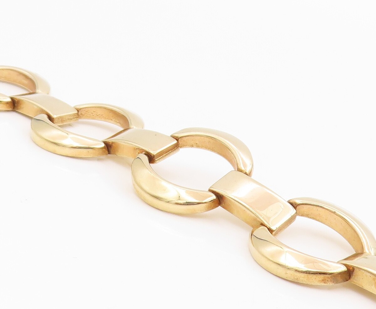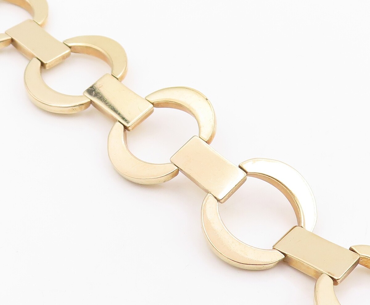 925 Sterling Silver Vintage Bracelet Gold Plated MILOR Geometric Link BT11964