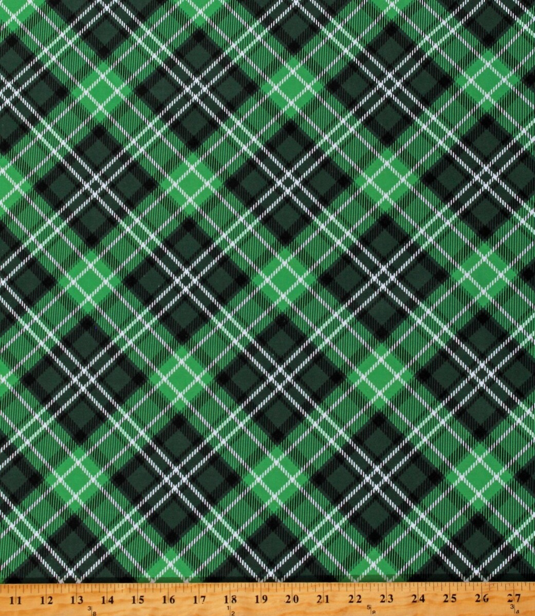Cotton Green White Black Plaid Saint Patrick's Day Fabric Print by Yard D563.66