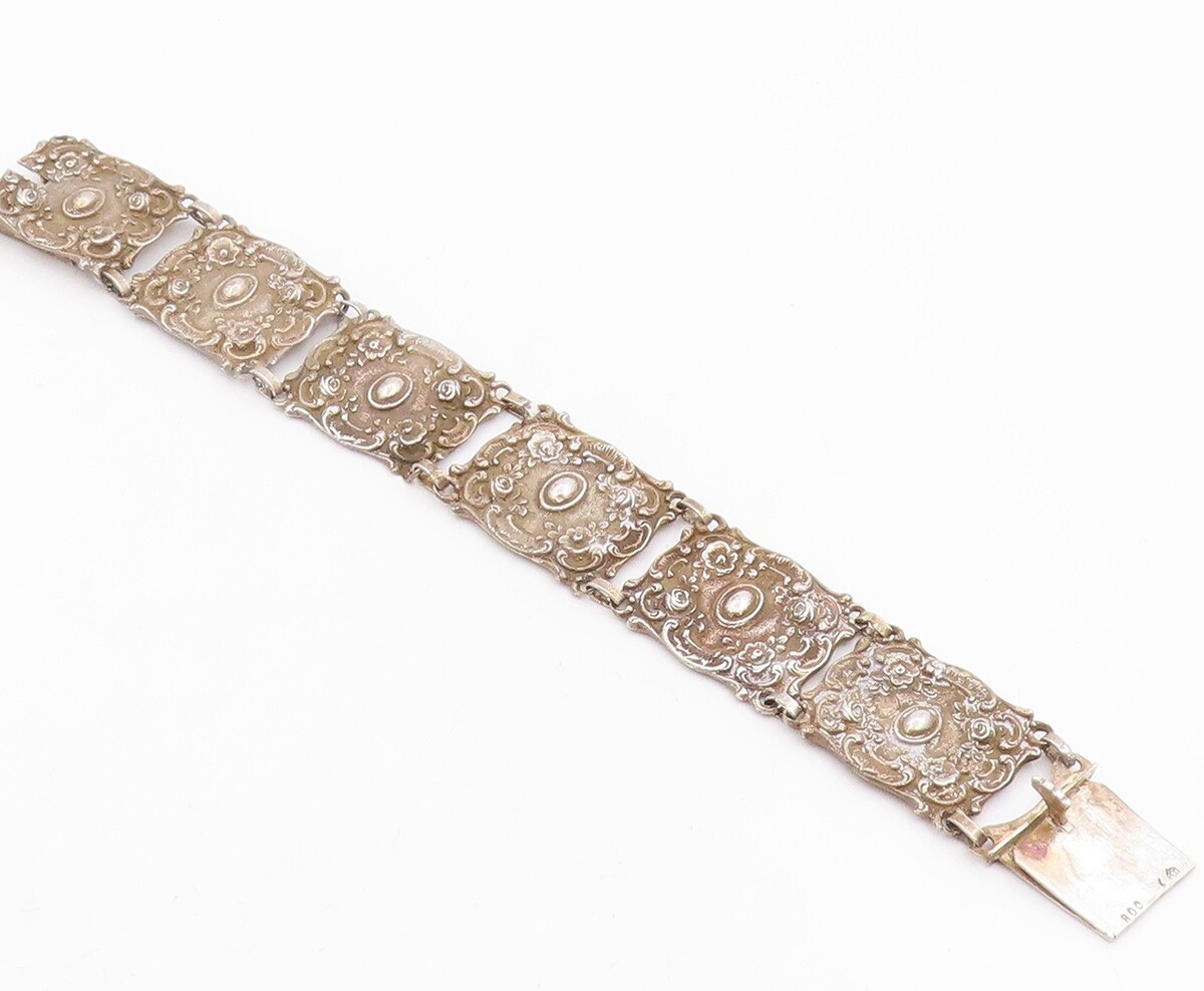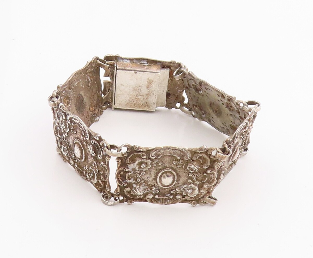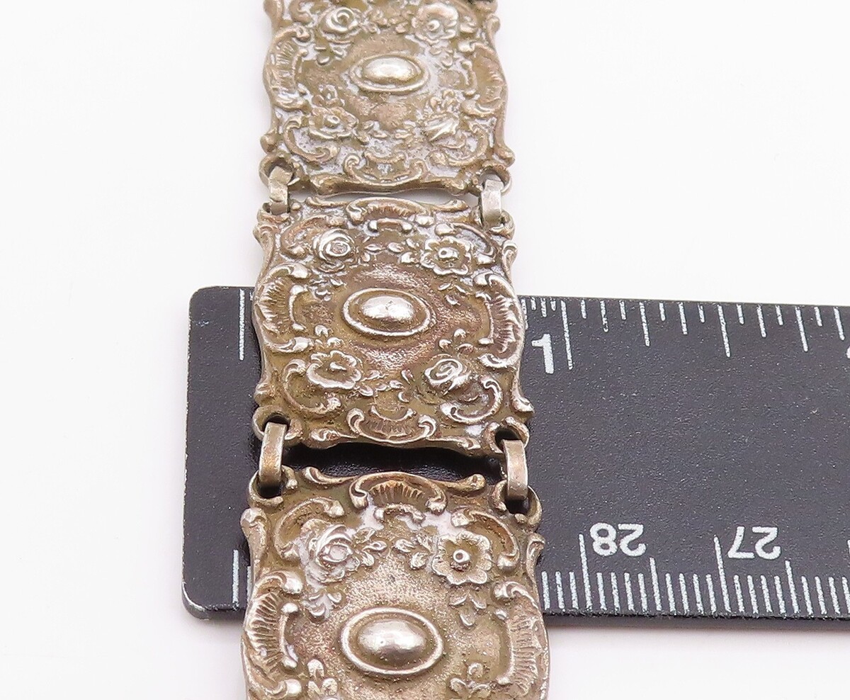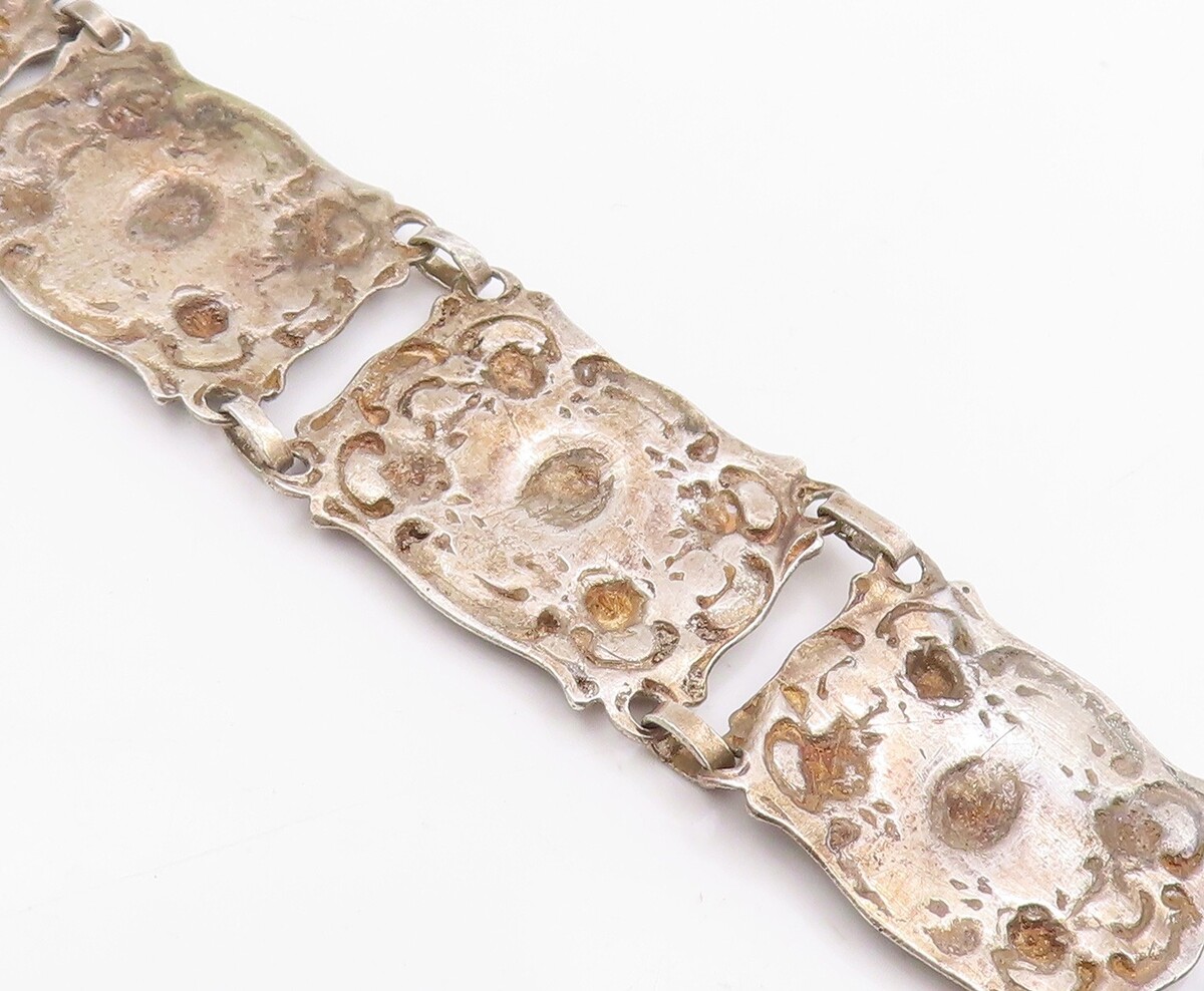 925 Sterling Silver Vintage Bracelet GERMANY Antique Scroll Panel Link BT11947