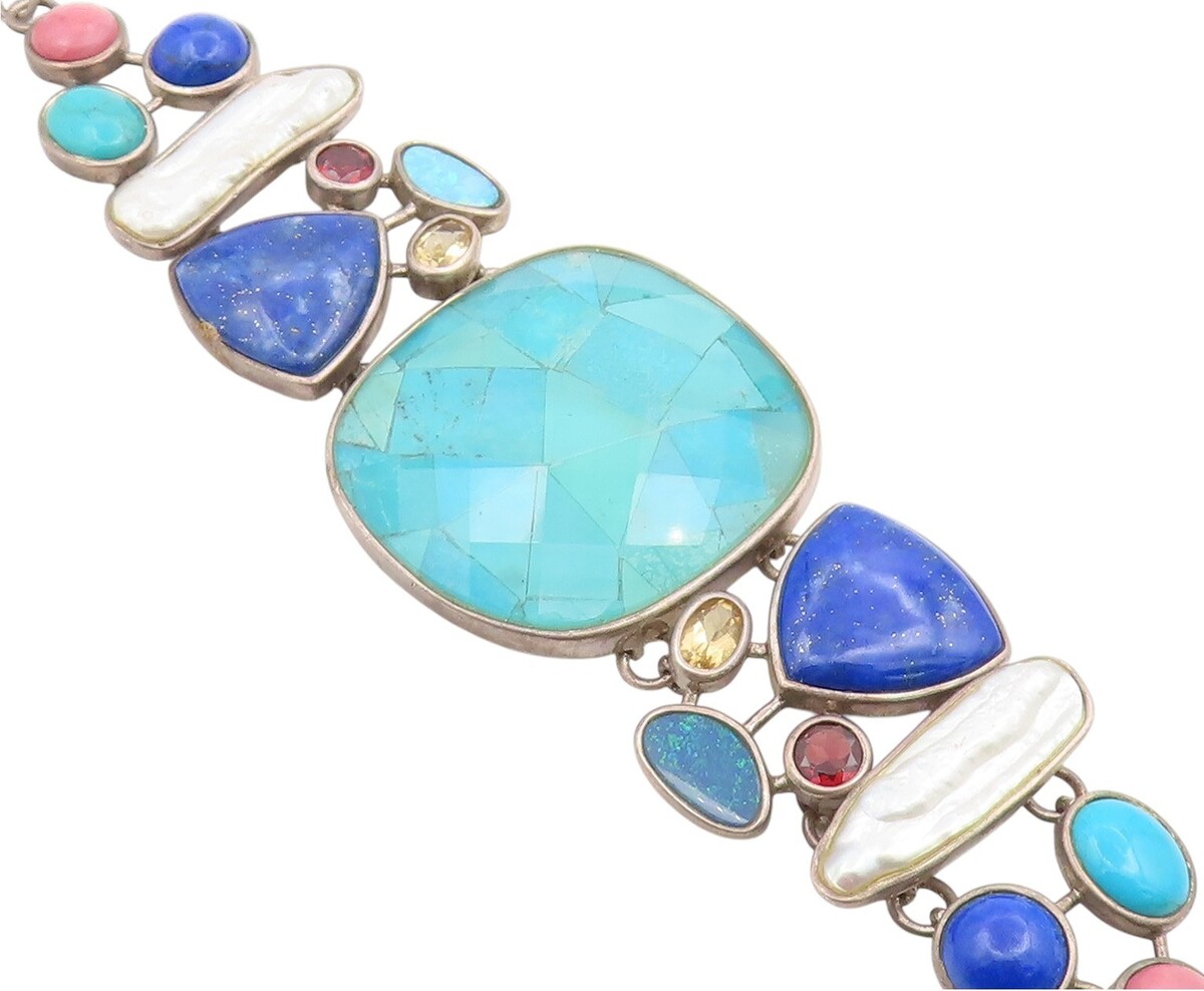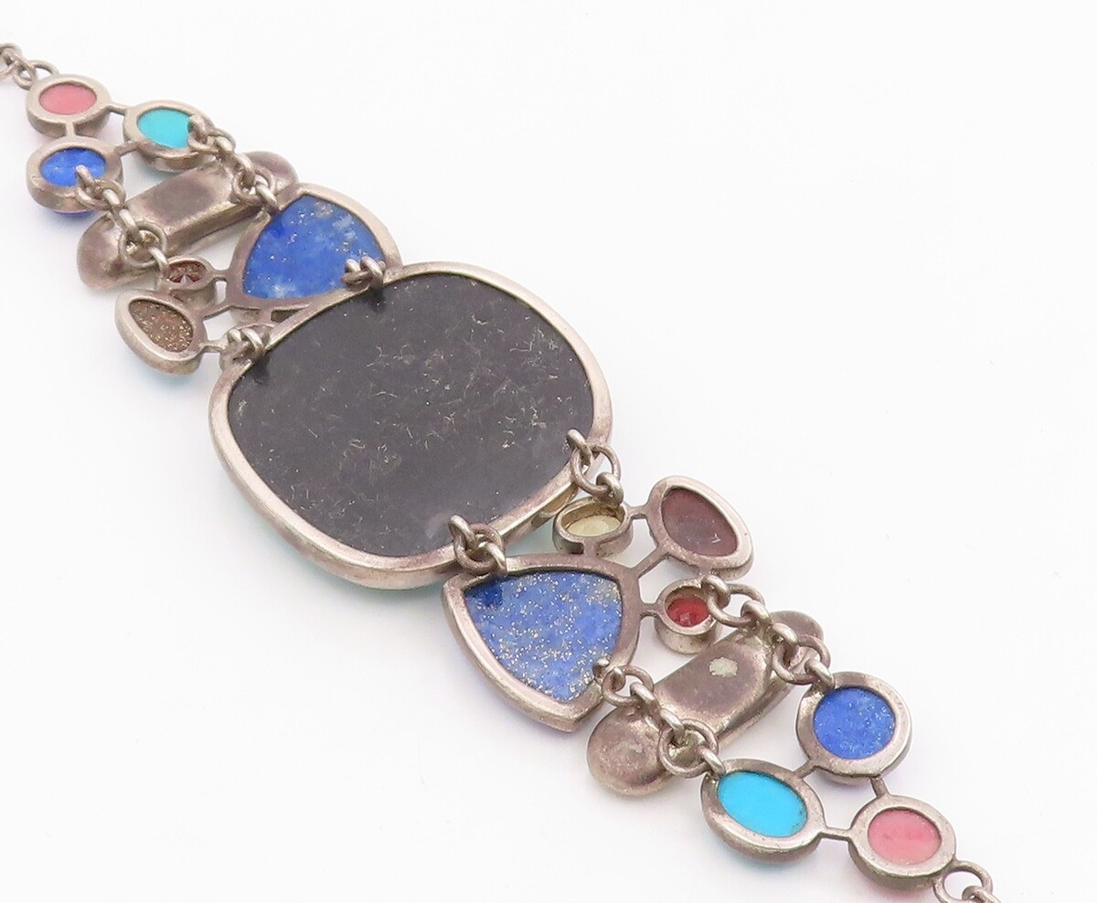925 Sterling Silver Vintage Bracelet WHITNEY KELLY Multi Gemstone Link BT11985