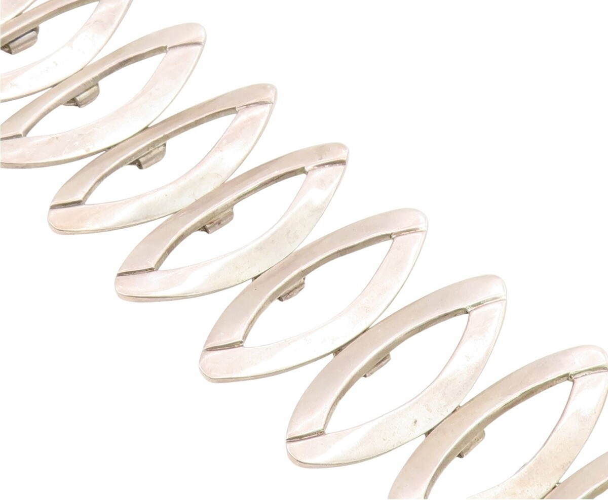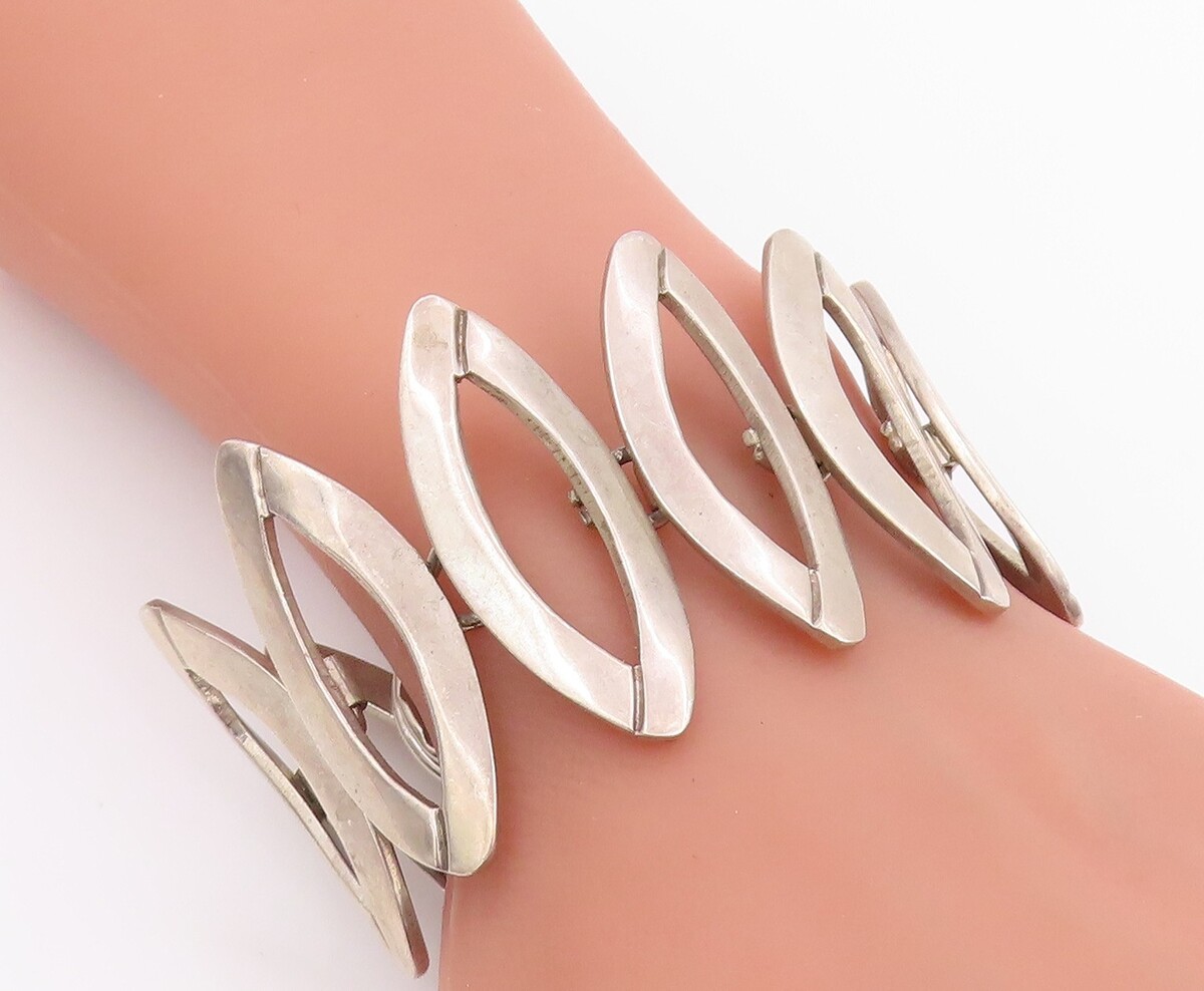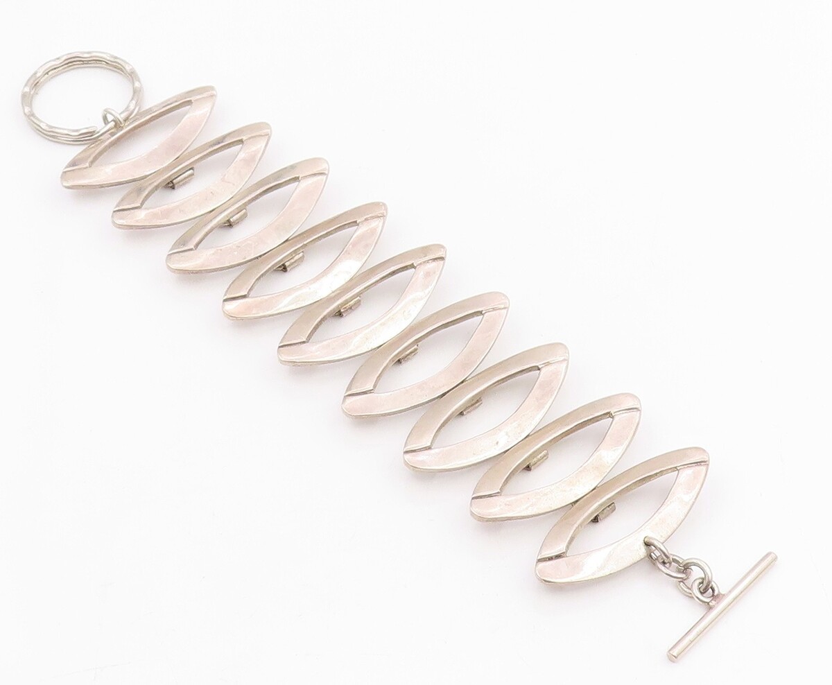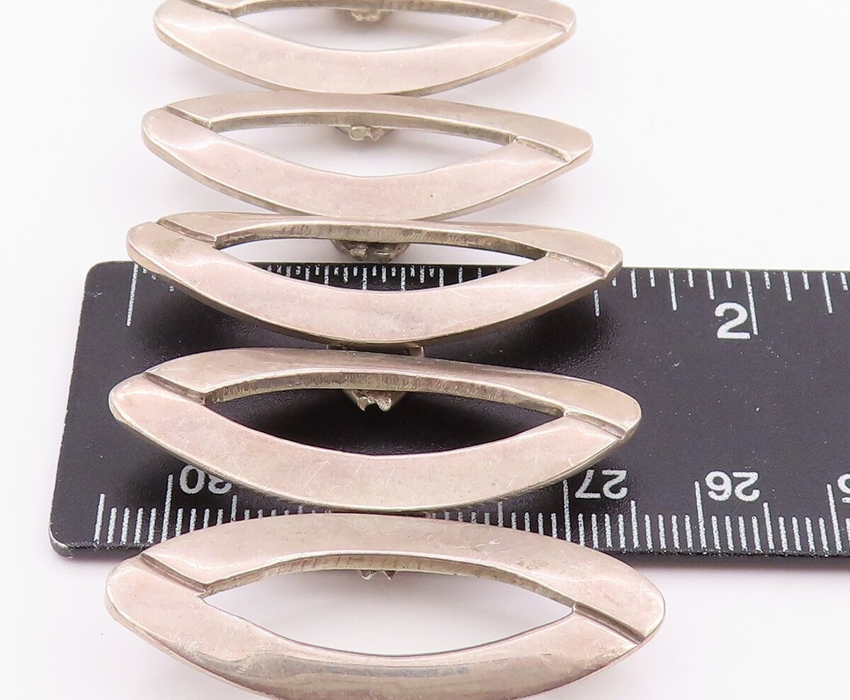925 Sterling Silver Vintage Bracelet Modernist Marquise Panel Link BT11949