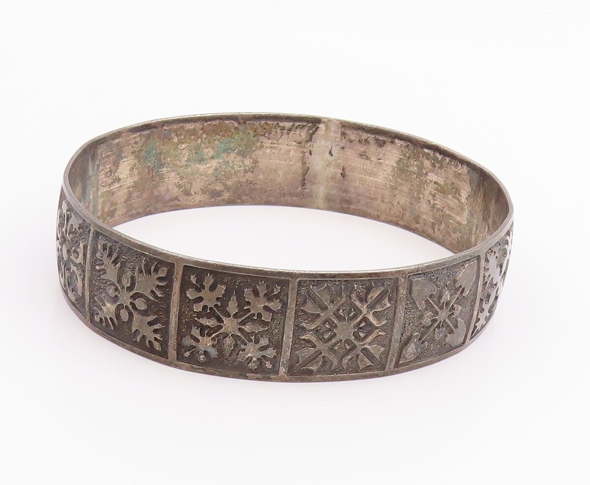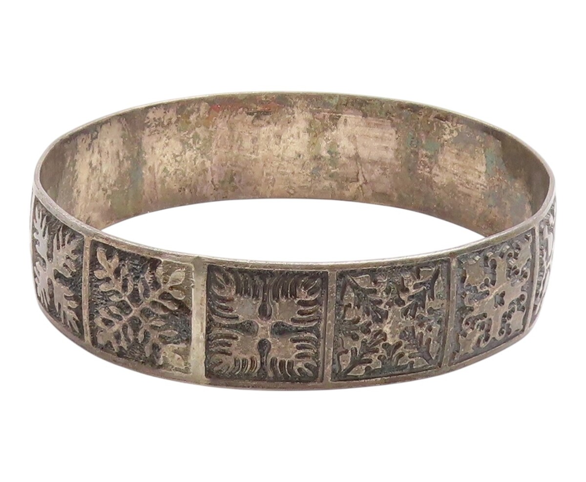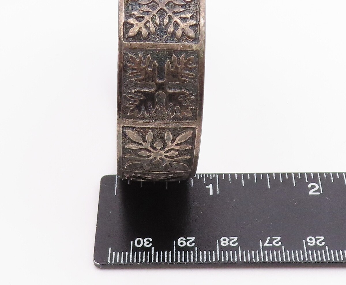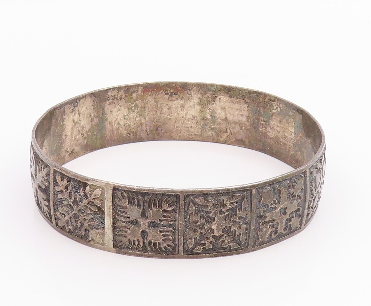 925 Sterling Silver Vintage Bracelet Classic Etched Floral Motif Bangle BT11956