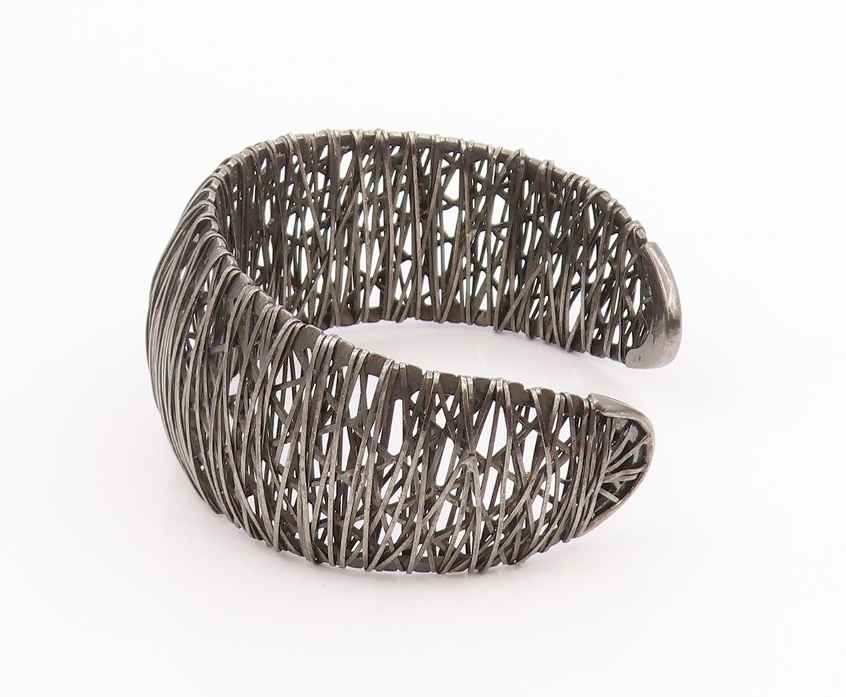 925 Sterling Silver Vintage Bracelet MILOR Intertwined Tangle Mesh Cuff BT11953