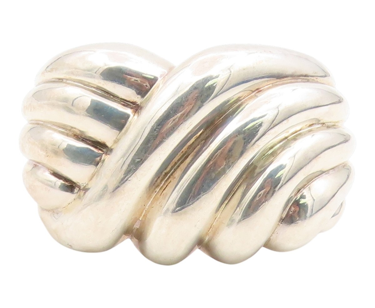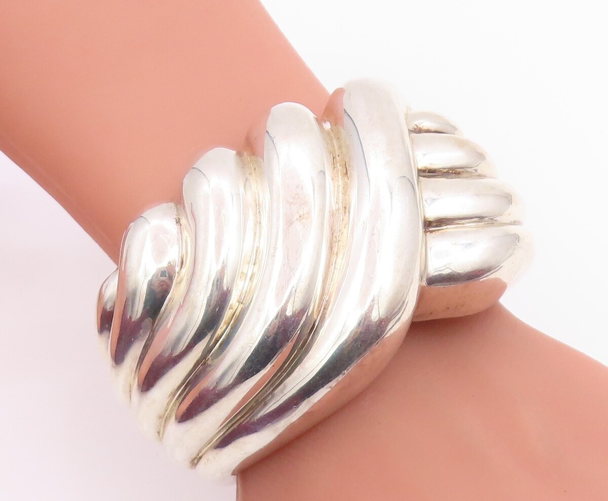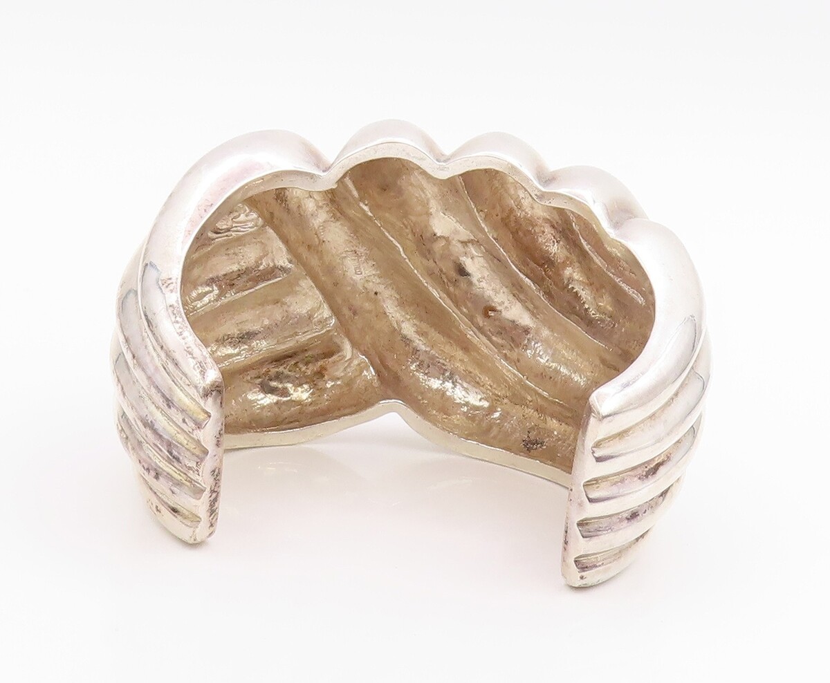 925 Sterling Silver Vintage Bracelet Modernist Solid Ribbed Wide Cuff BT11950