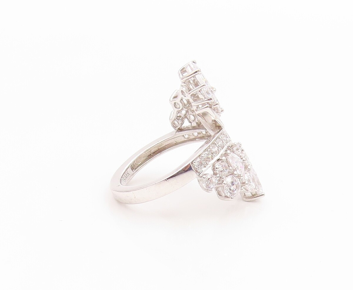 925 Sterling Silver Vintage Ring Multi Shape CZ Elegant Bypass Sz 6.5 RG35526