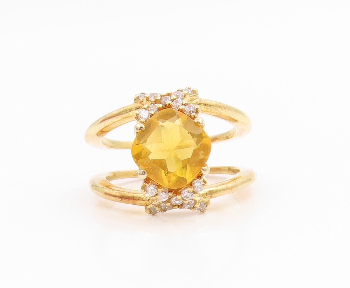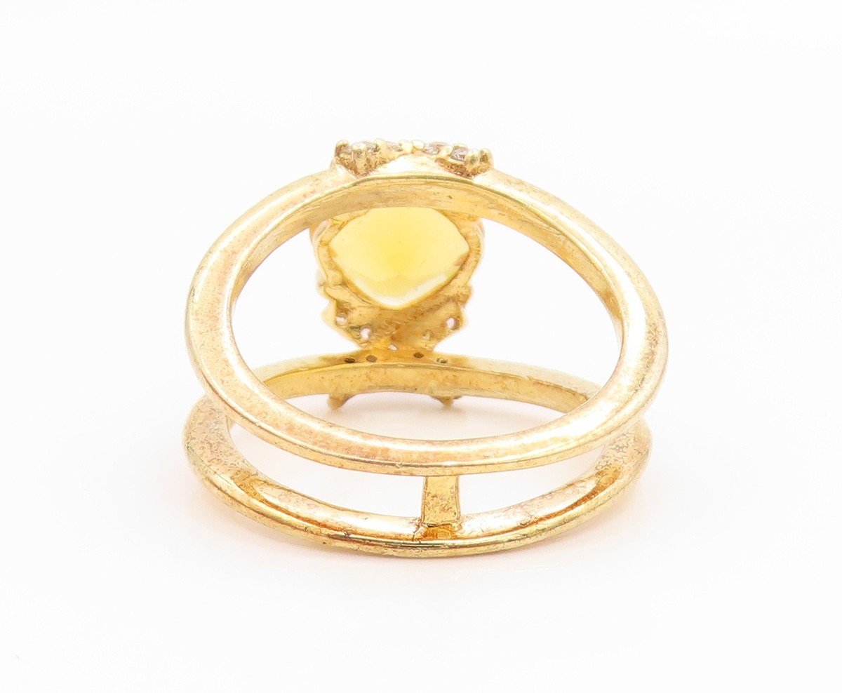 925 Sterling Silver Vintage Ring Gold Plated Citrine & CZ Band Sz 6.5 RG35517