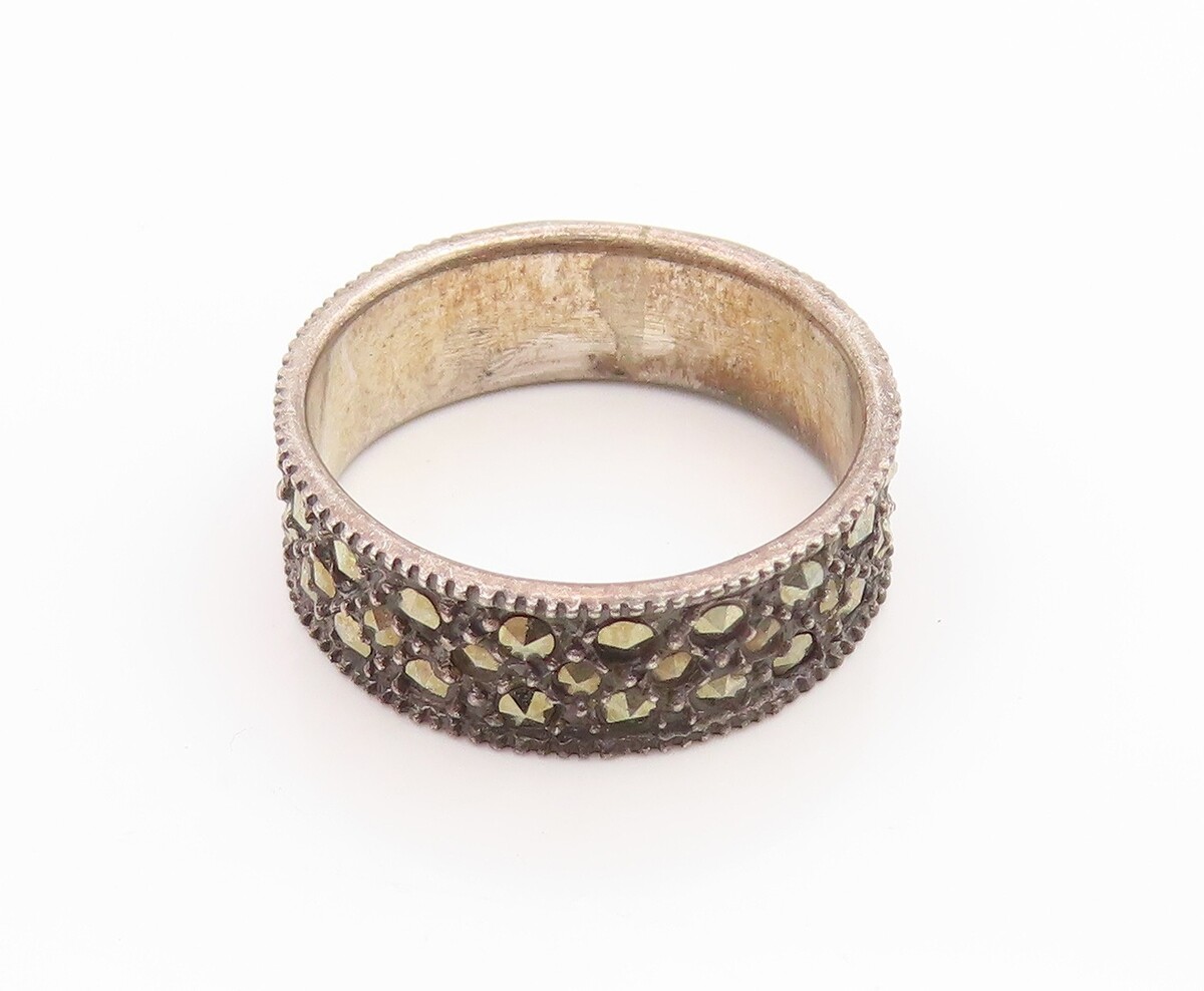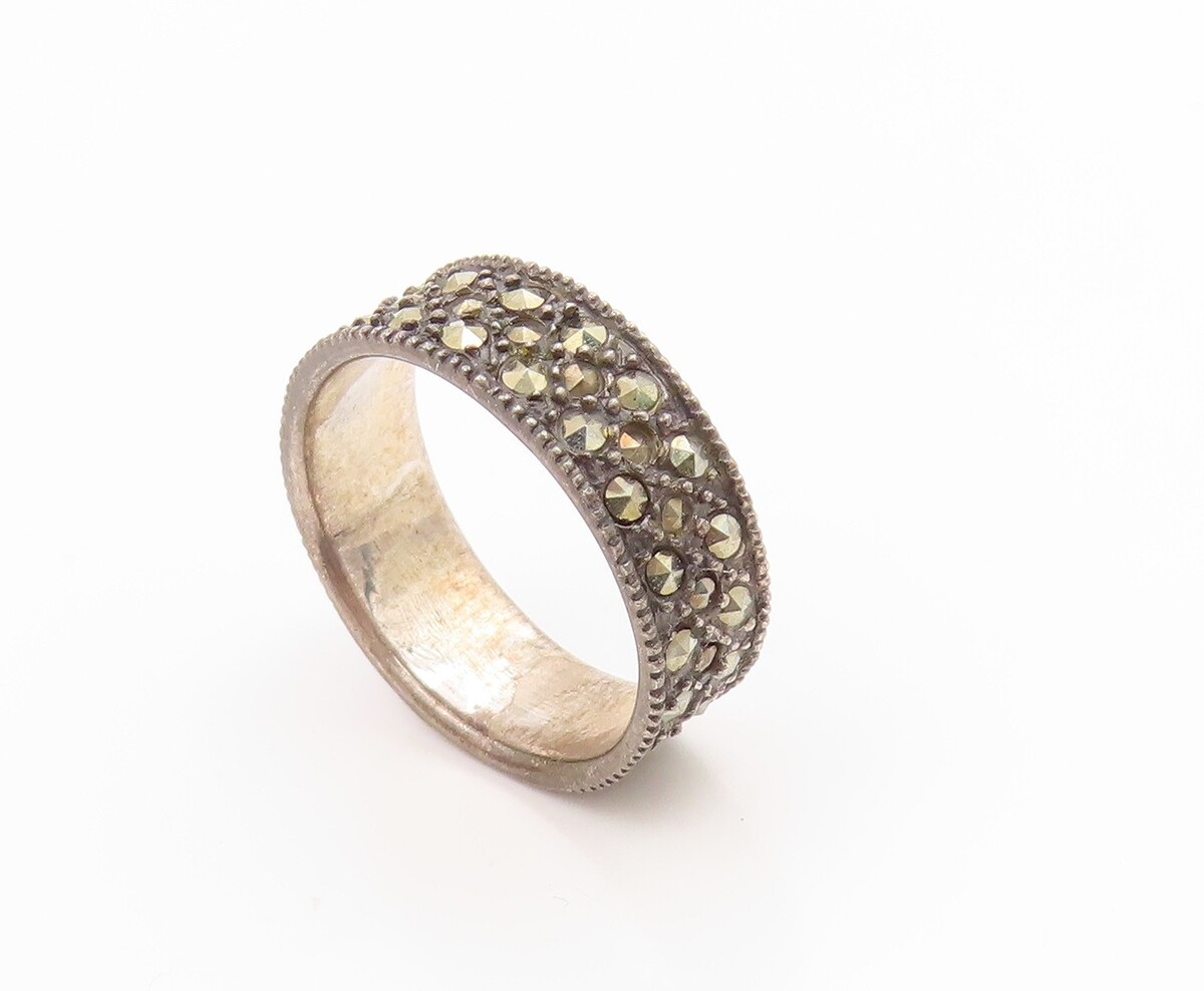 925 Sterling Silver Vintage Ring Classic Marcasite Eternity Band Sz 7 RG35537