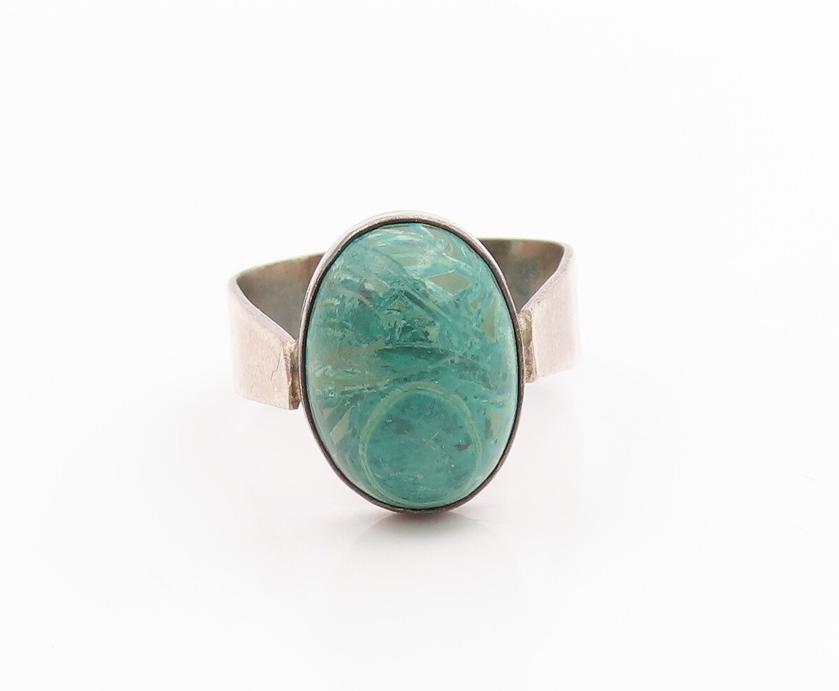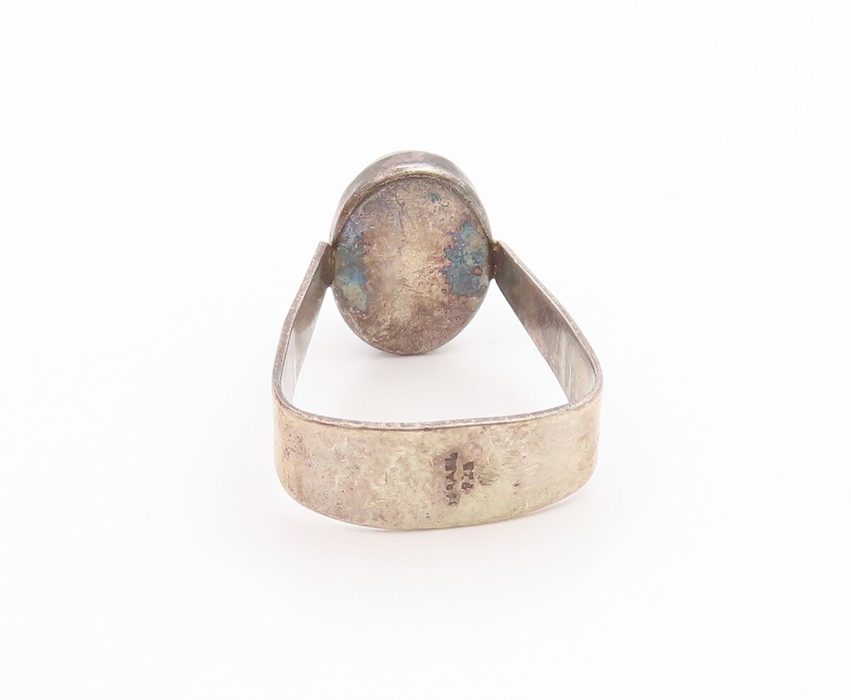 925 Sterling Silver Vintage Ring ISRAEL Cabochon Eilat Stone Band Sz 7.5 RG35539