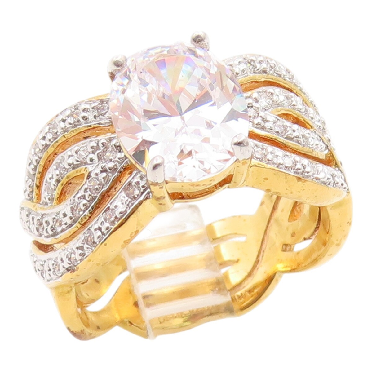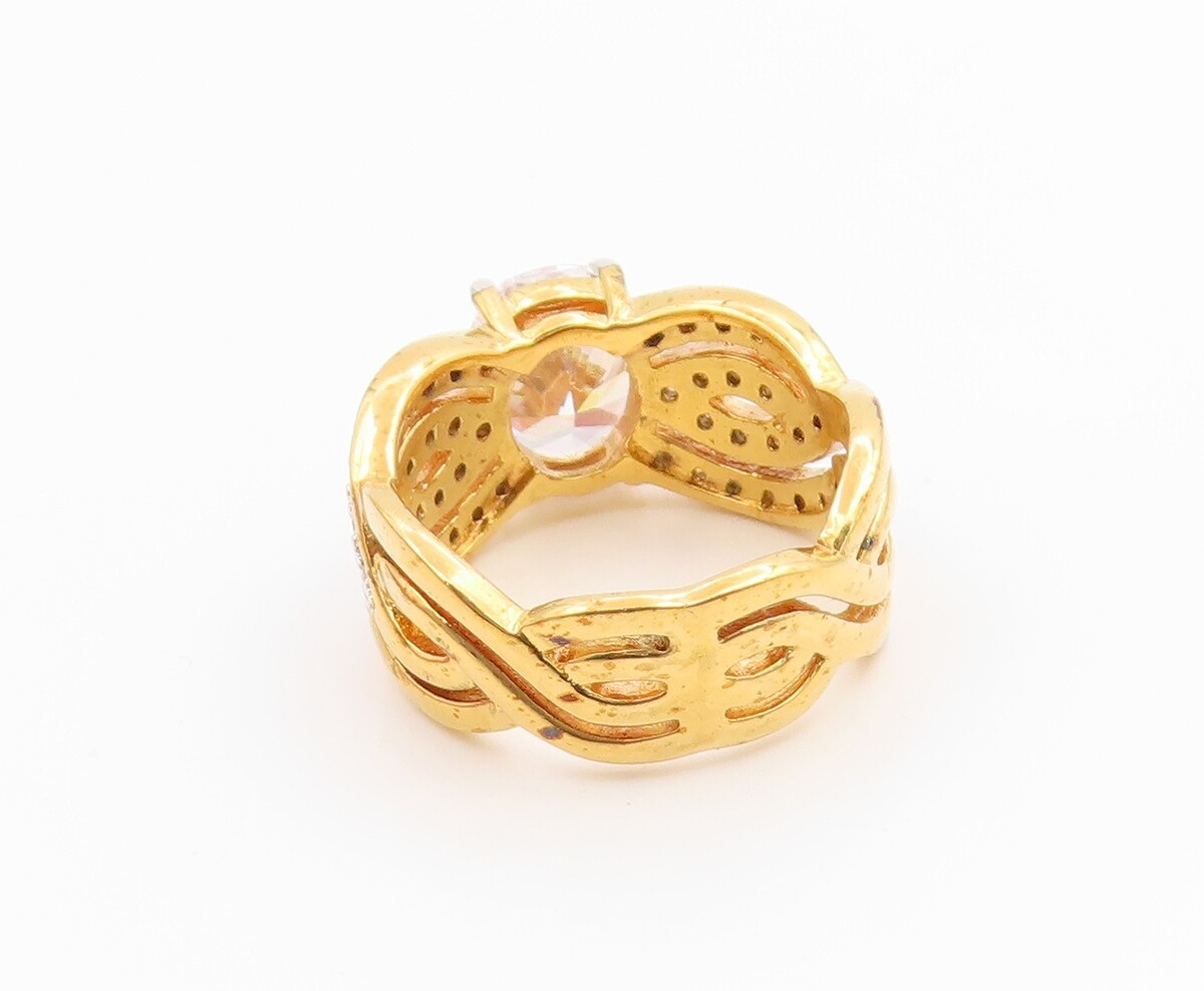 925 Sterling Silver Vintage Ring Gold Plated CZ Statement Band Sz 7 RG35520