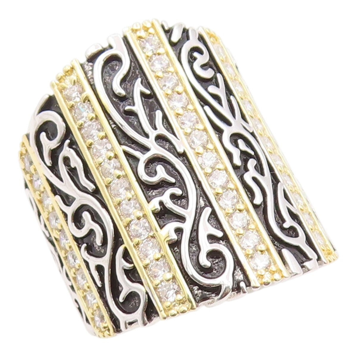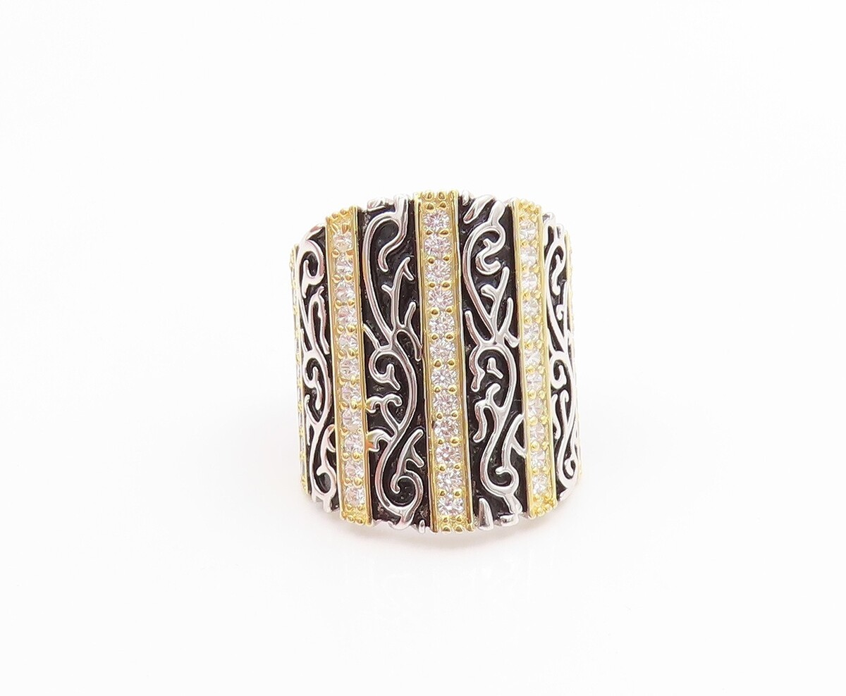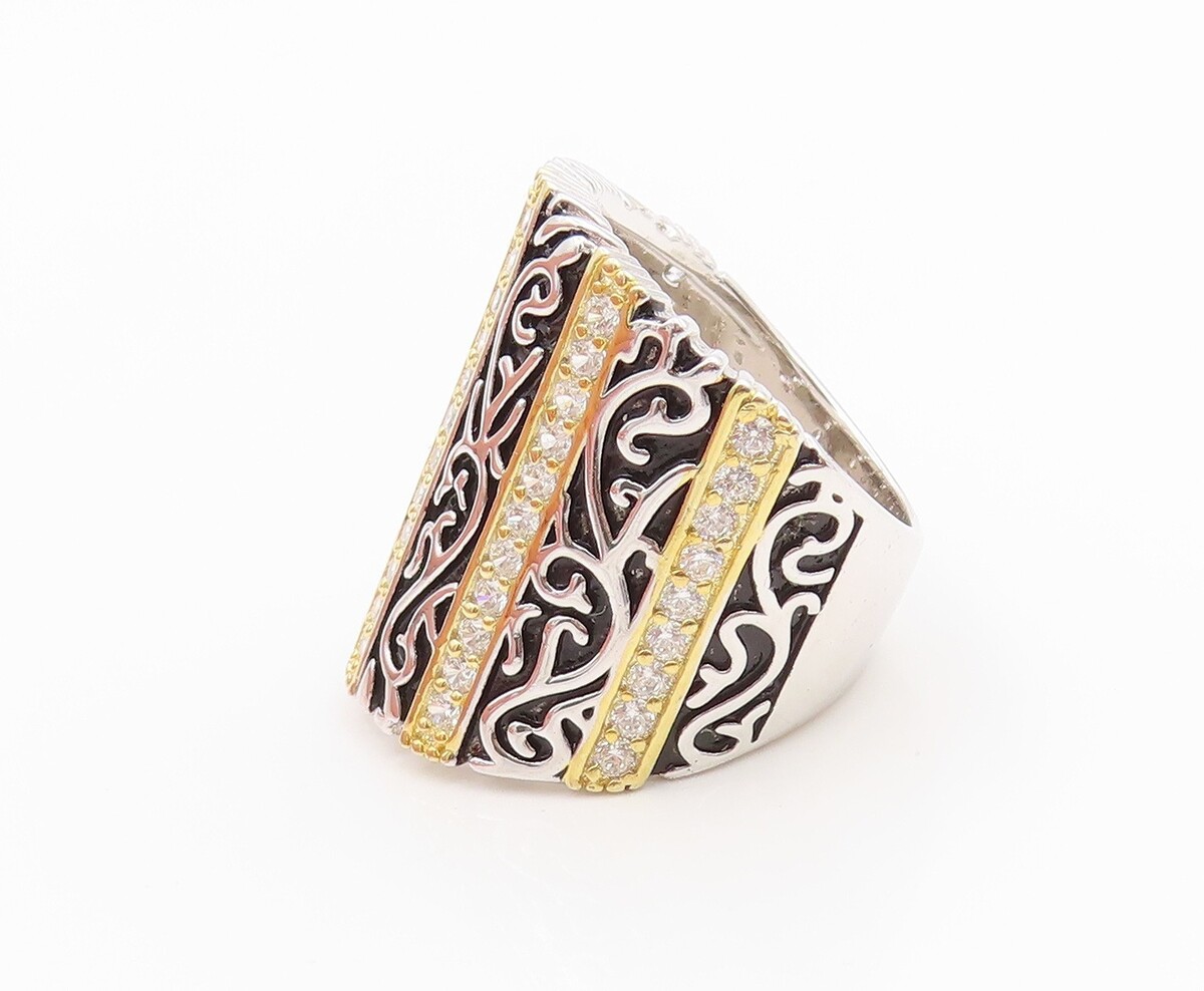 925 Sterling Silver Vintage Ring CZ Multi Tone Scroll Wide Band Sz 7 RG35535
