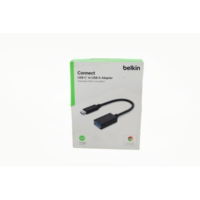 Belkin Connect USB-C to USB-A Adapter provides seamless connectivity for your USB-A devices to USB-C enabled laptops or tablets. This high-speed adapter supports data transfer rates up to 10 Gbps, making it ideal for syncing photos, music, and data quickly. The tethered cable design ensures a direct and stable connection, while the compact black finish offers a professional look. It is officially certified to work with Chromebook, ensuring compatibility across a wide range of modern hardware.