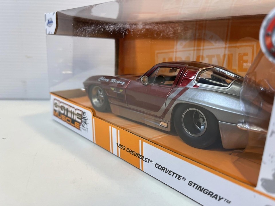 1963 Chevy Corvette Diecast Model Car: 1/24 Scale, New In Box By Jada. This Diecast car checks all the boxes for a reasonably priced rendition of the classic die cast 1963 Chevy Corvette.