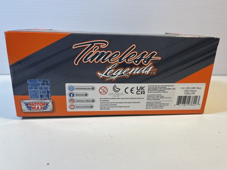 1955 GMC Blue Chip Diecast Model Car: 1/24 Scale, New In the Box By Motor Max. This Diecast car checks all the boxes for a reasonably priced rendition of the classic die cast 1955 GMC Blue Chip.