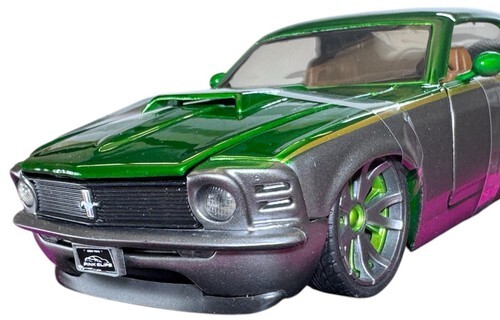 1970 Ford Mustang Boss 429 New In The Box Diecast Model in 1/24 Scale by Jada. This Diecast car checks all the boxes for a reasonably priced rendition of the classic die cast 1970 Ford Mustang Boss 429.