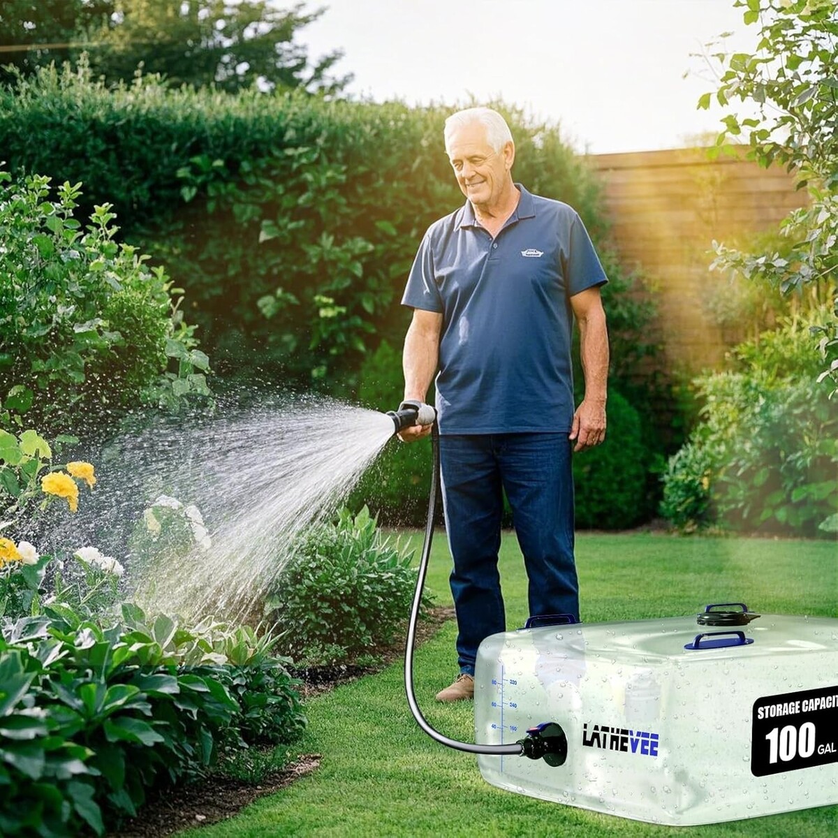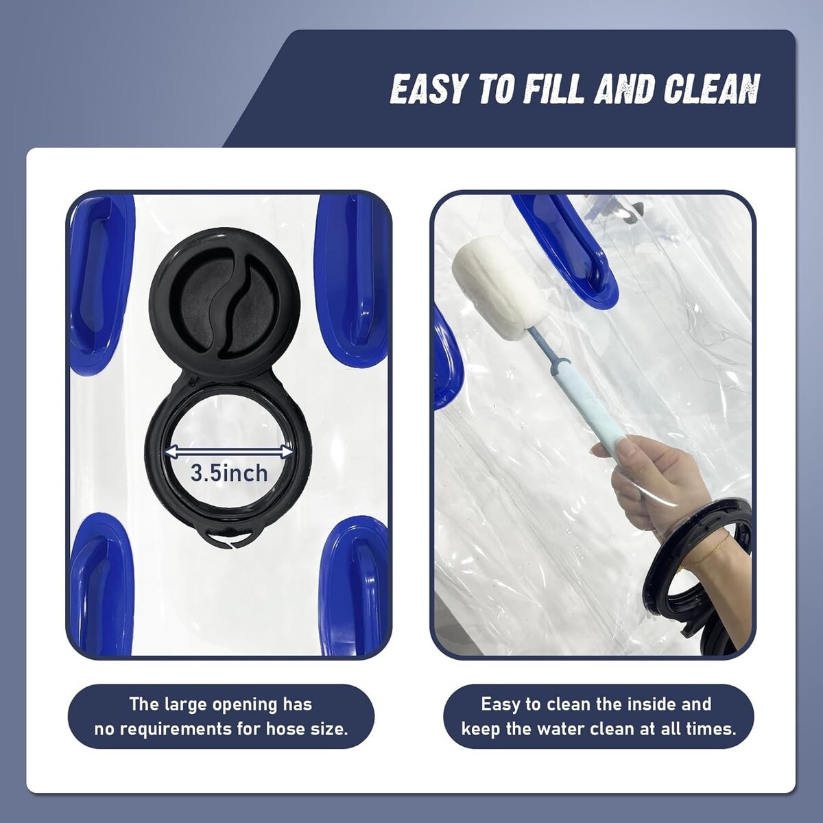 INNOVATIVE DESIGN WATER CONTAINER: Our high transparency material enhance the visibility of the water container to avoid water stored in the dark color bladder with invisible dirt effectively. Help keep your water clean for washing and flushing. Molded-in graduation marks in gallons liters allow easy monitoring of water volume in real time.
