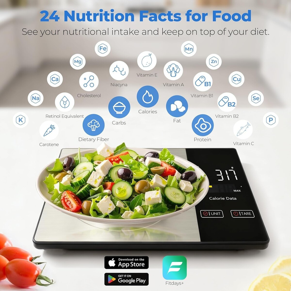 Precision Digital Food Scale: Measure & Track 24 Nutrients for Healthy Meal Prep