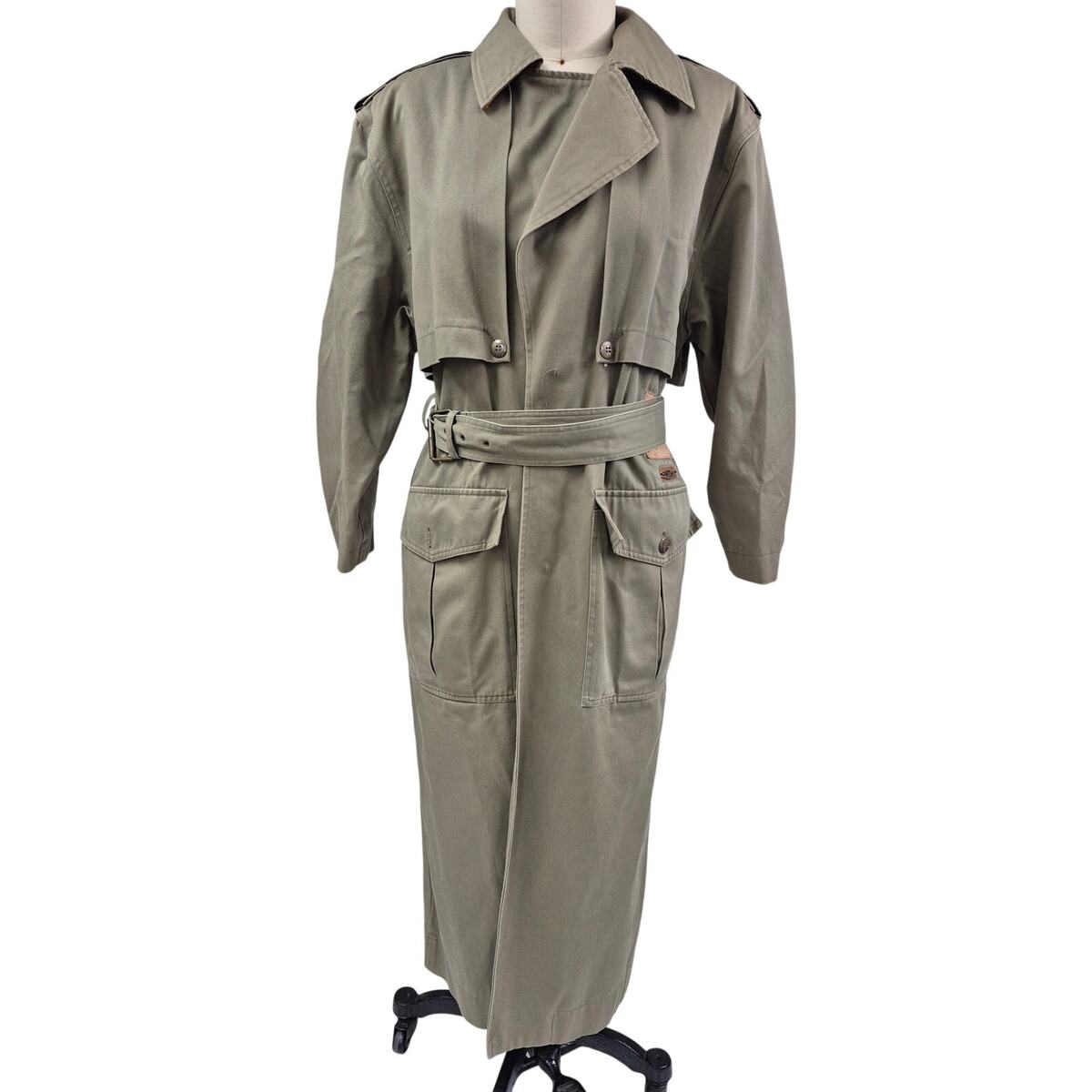 VTG 80s Together Khaki Trench Coat Belted Minimalist Power Safari Sz M