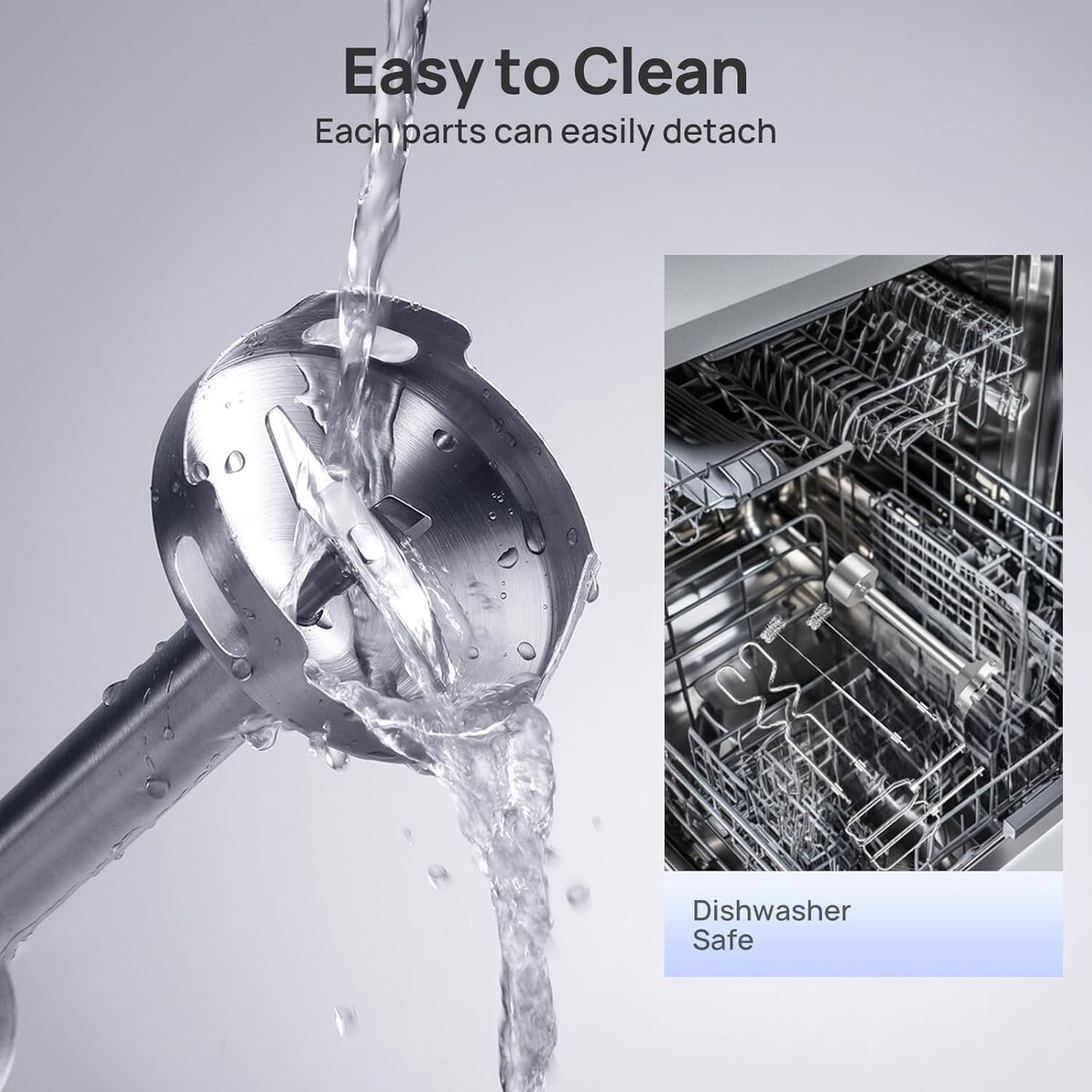 Easy to Clean: The quick-attach and detach mechanism makes changing attachments a breeze, while detachable parts allow for straightforward cleaning - simply rinse or place in the dishwasher.
