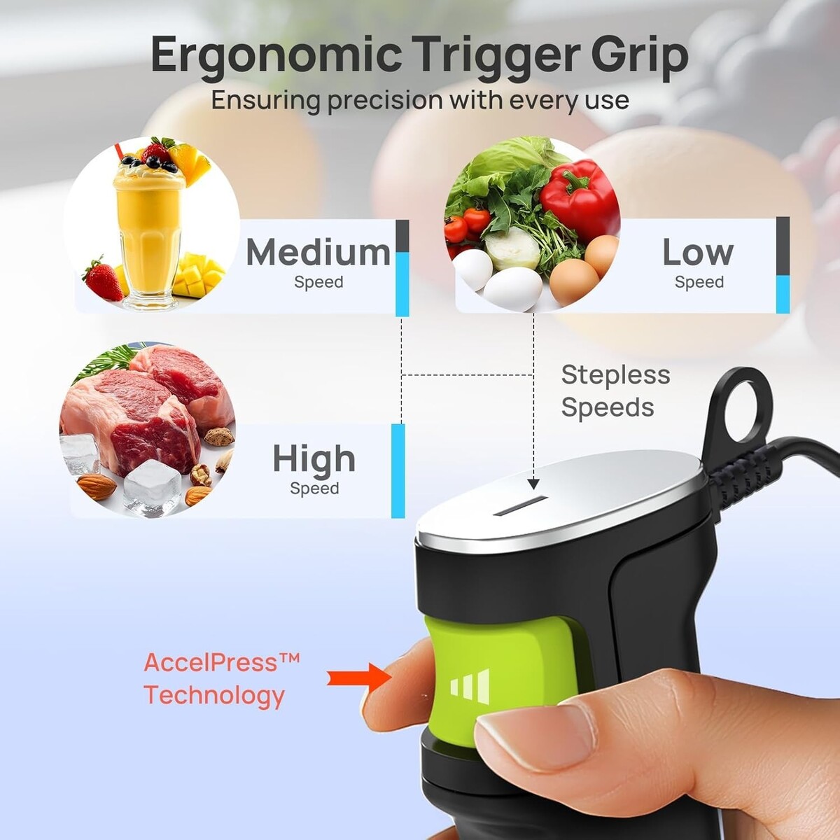 Trigger Speed Control: Enjoy intuitive operation with AccelPress Technology, allowing you to effortlessly adjust speeds while minimizing splatter.