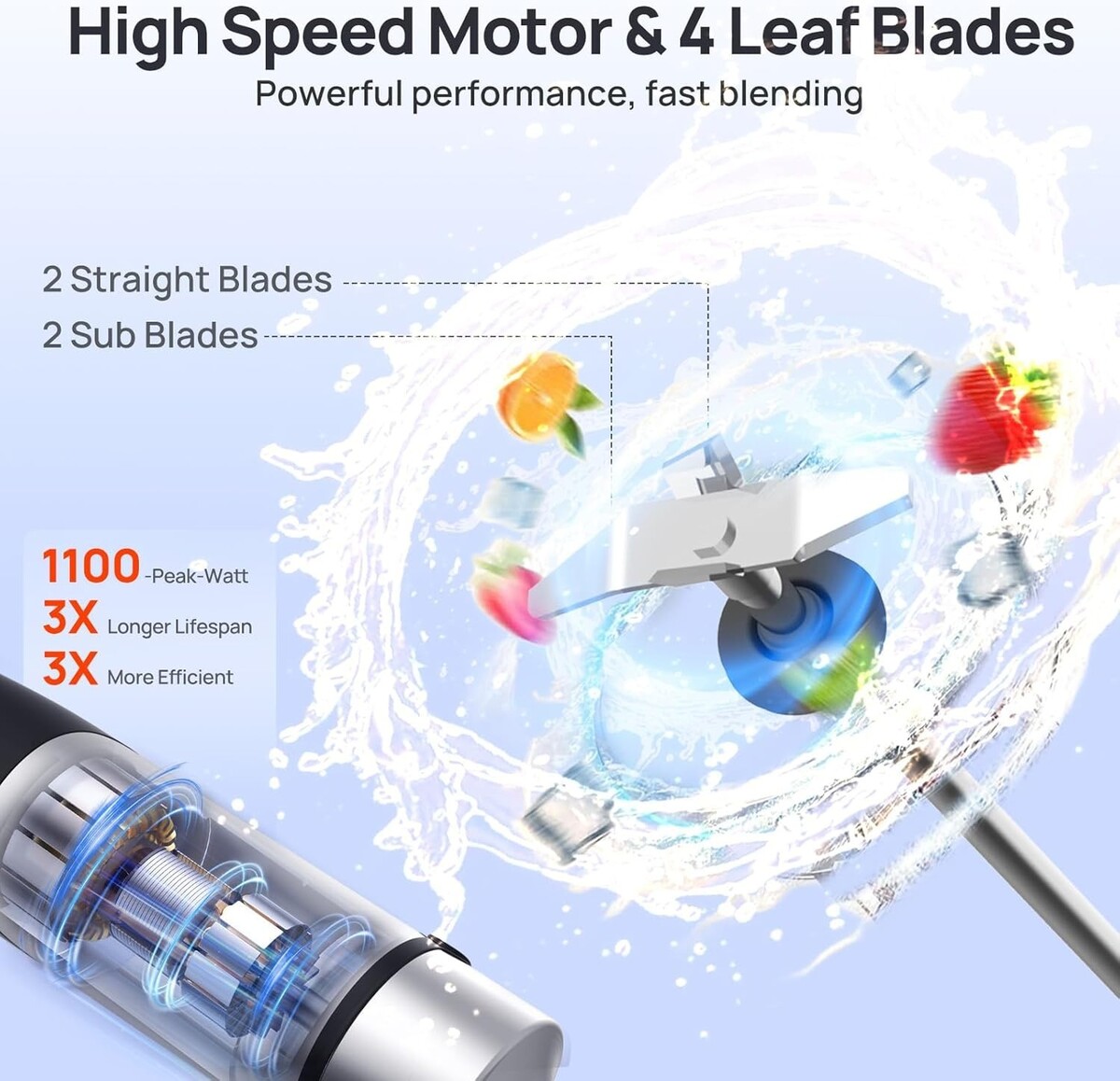 High Blending Performance: Powered by a robust 1100W full copper motor, featuring 2 straight and 2 sub blades for exceptionally efficient and fast blending.