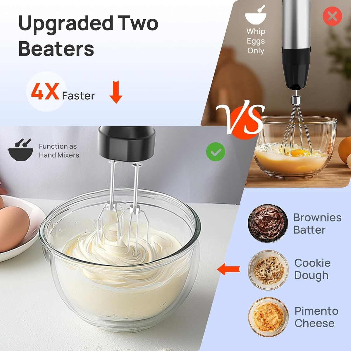 Versatile Attachments: Comes with 3 innovative dual-drive shaft attachments, including Double Frothers, Beaters, and Hooks to elevate your culinary creations.