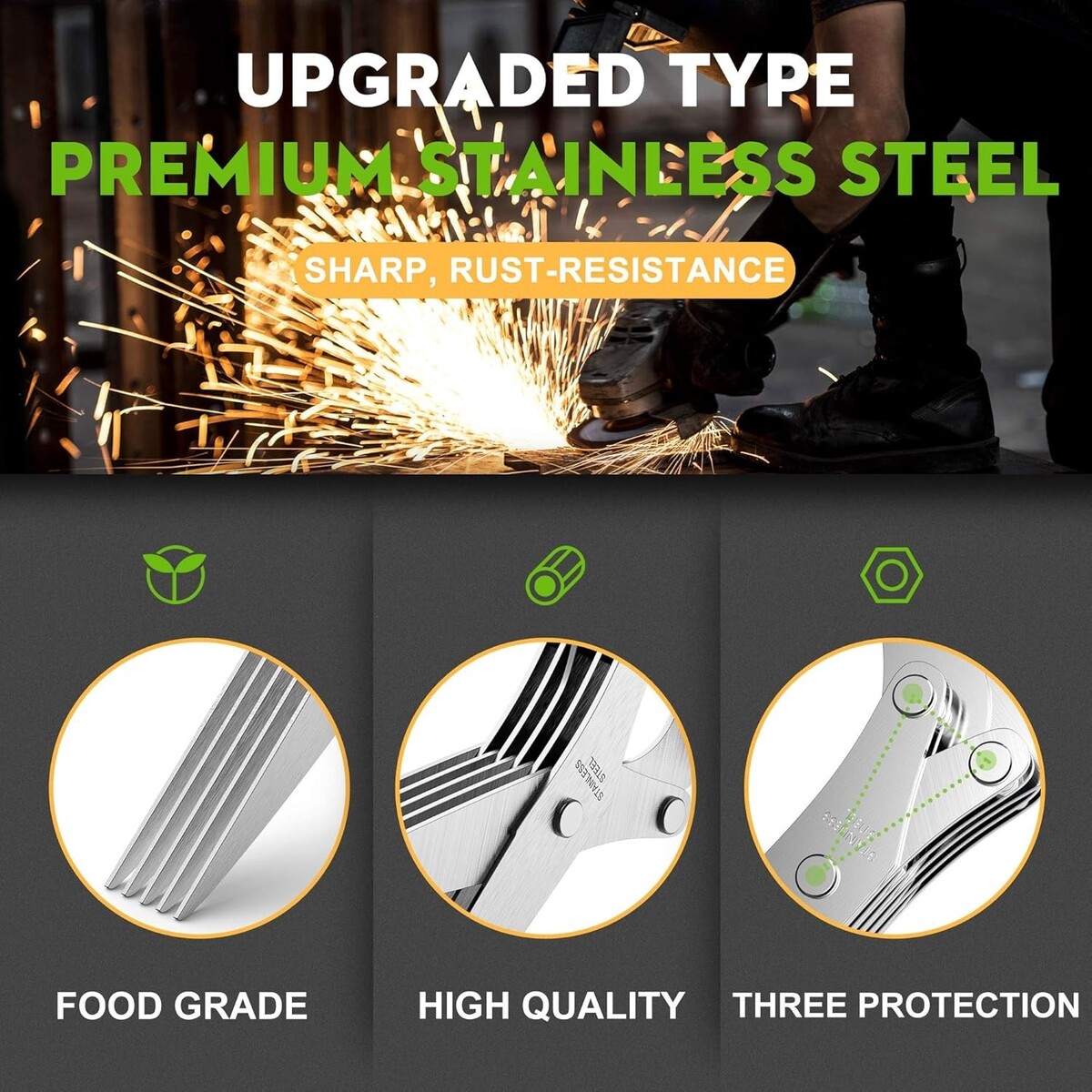 Dishwasher Safe Herb Shears Set with Non-Slip Handle & 5 Blades - Updated 2025