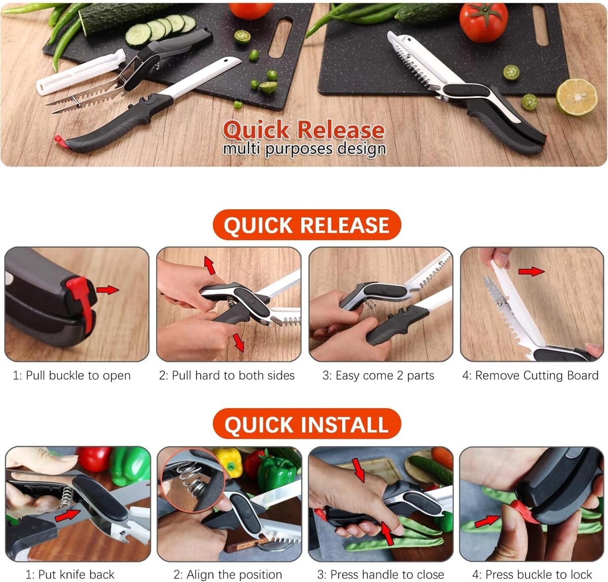 Ambidextrous Kitchen Shears with Quick-Release Cutting Board & Safety Features