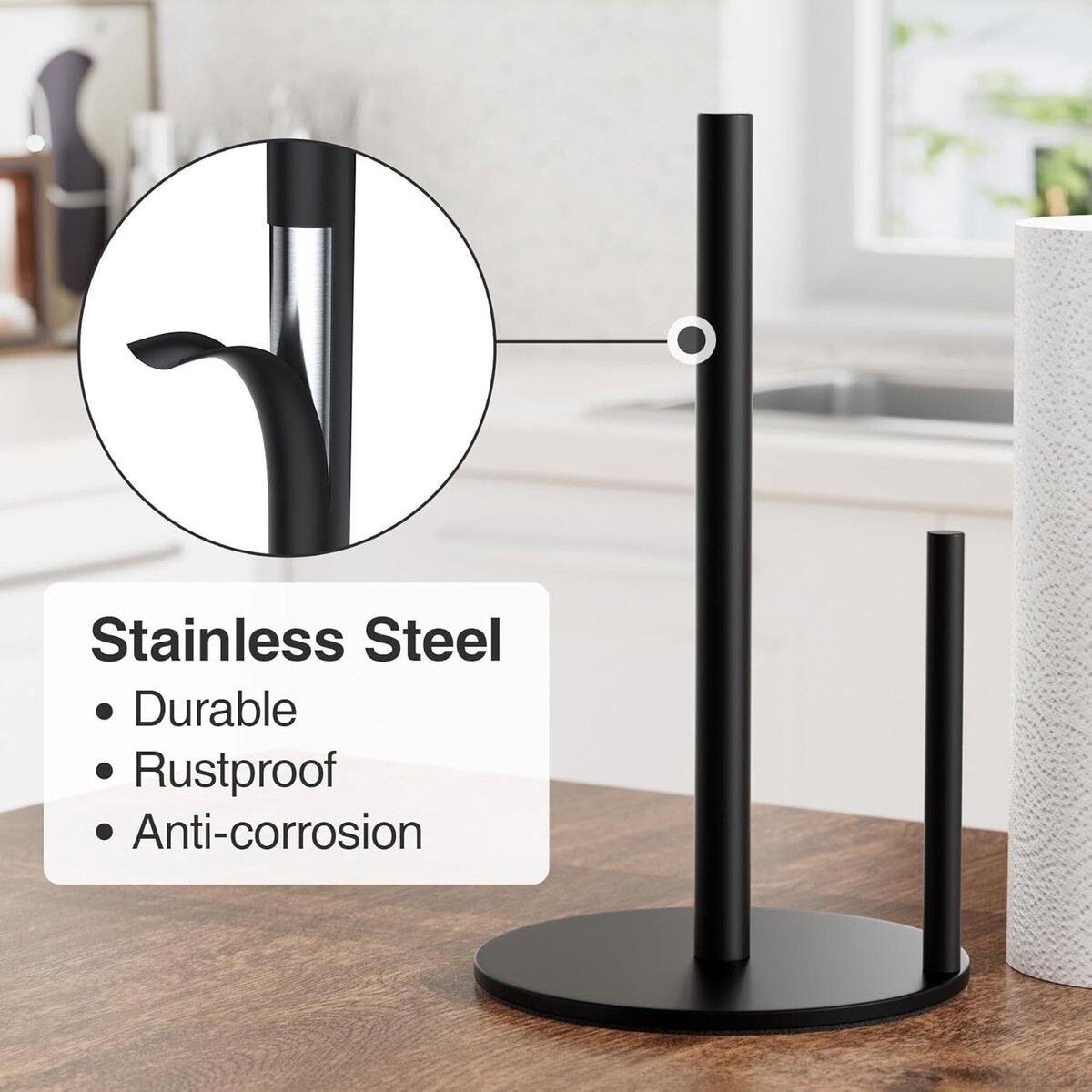 Elevate your kitchen's sophistication and functionality with our Elegant Free Standing Paper Towel Holder. Its beautiful matte black finish and stainless steel design promise not only aesthetic appeal but also practical benefits. Experience the ease of use, stability, and style with a holder that caters to your modern lifestyle.