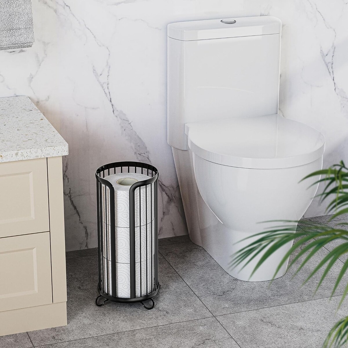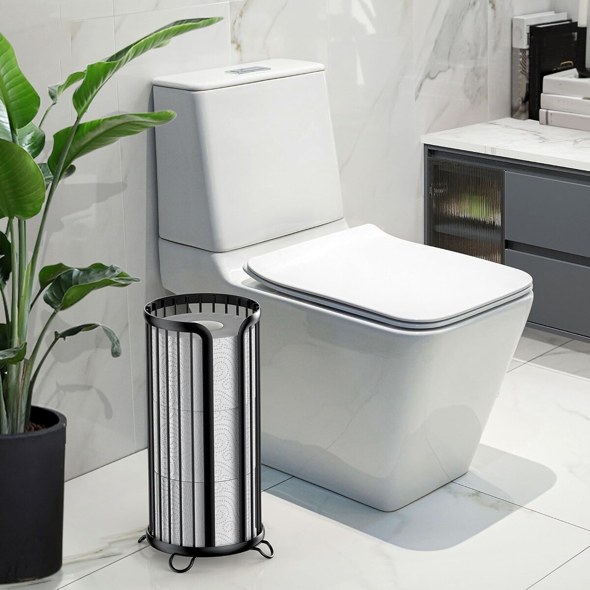 Modern Black Toilet Paper Stand - Minimalist Organizer with Durable Metal Design