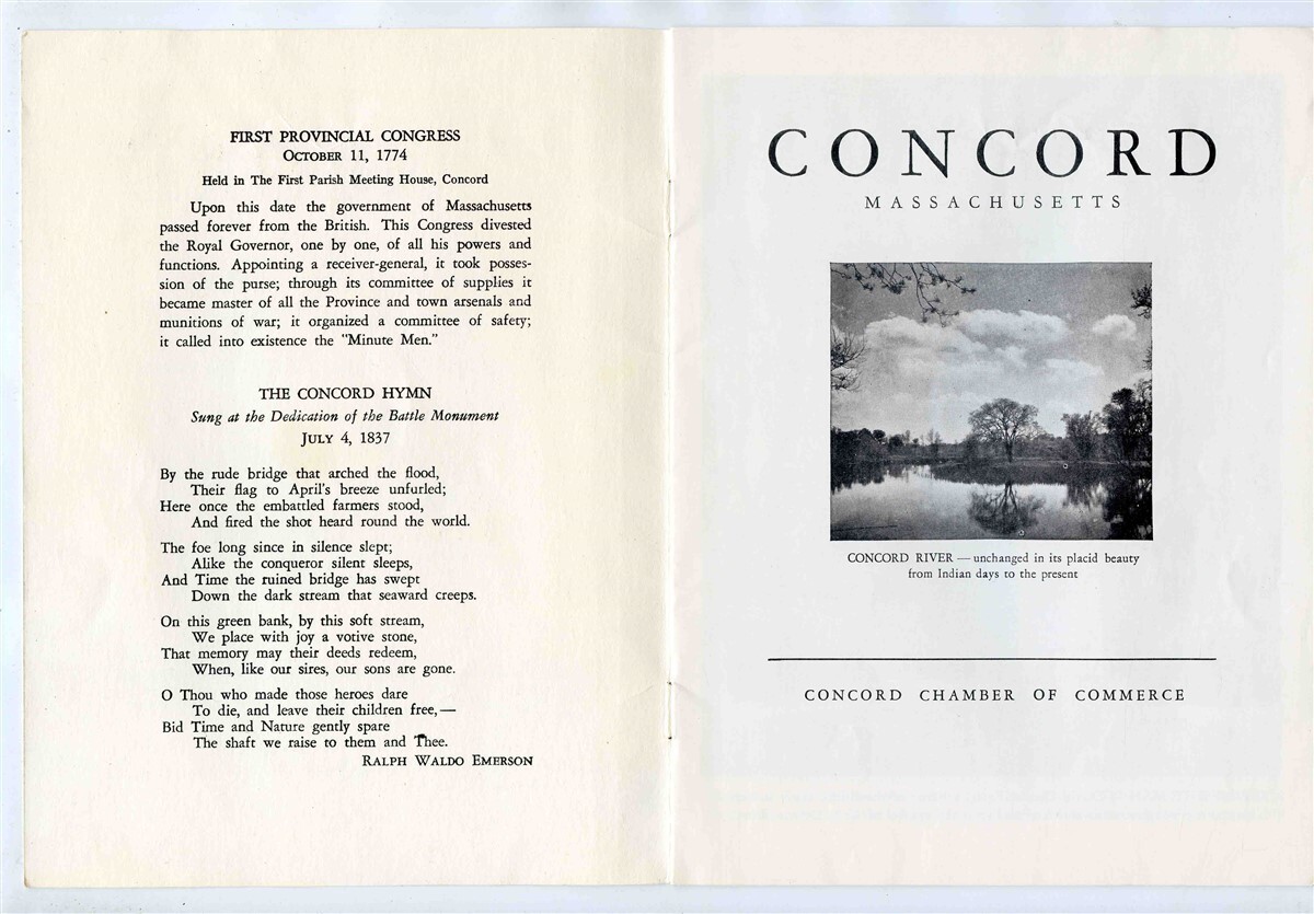 A 16 page illustrated booklet in card covers. Concord Massachusetts Some of its History and Pictures of Points of Interest . Published by The Concord Chamber of Commerce.