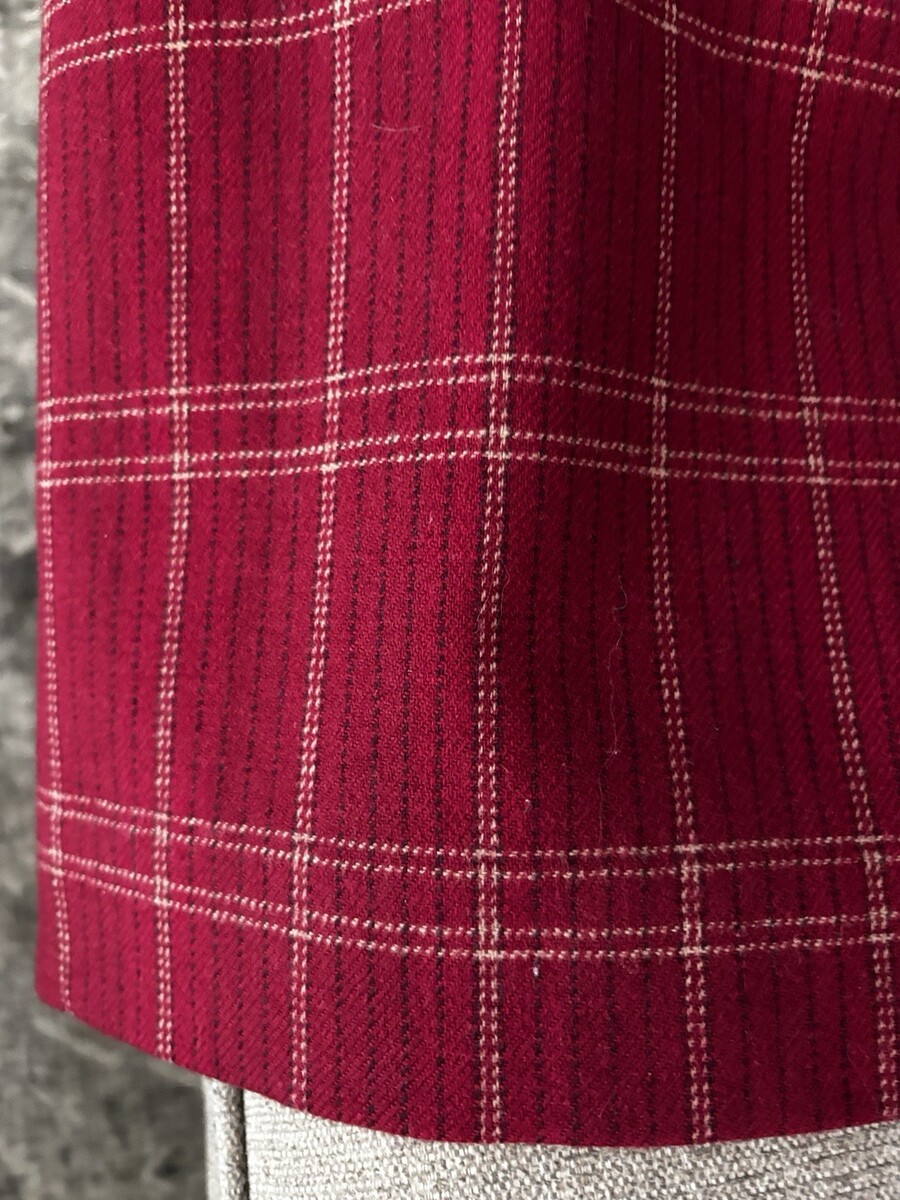 This Vintage PENDLETON Skirt in size 12 features a classic red plaid pattern, 100% Virgin Wool material, and lined pockets for added convenience. With a mid-rise and A-Line style, this skirt is perfect for casual or business occasions in the winter, fall, or spring seasons. Made in the United States, this skirt is a timeless piece that exudes a preppy and chic vibe, making it a versatile addition to any woman's wardrobe. Dry clean only to maintain its quality and charm. Waist is 30?