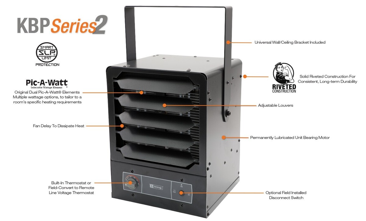 King Electric KBP Series 2 Compact Garage Heater KBP1230-1-S2-MB-T