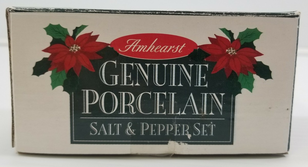 Amhearst Genuine Porcelain Salt and Pepper Shaker Set Christmas Holly Poinsettia