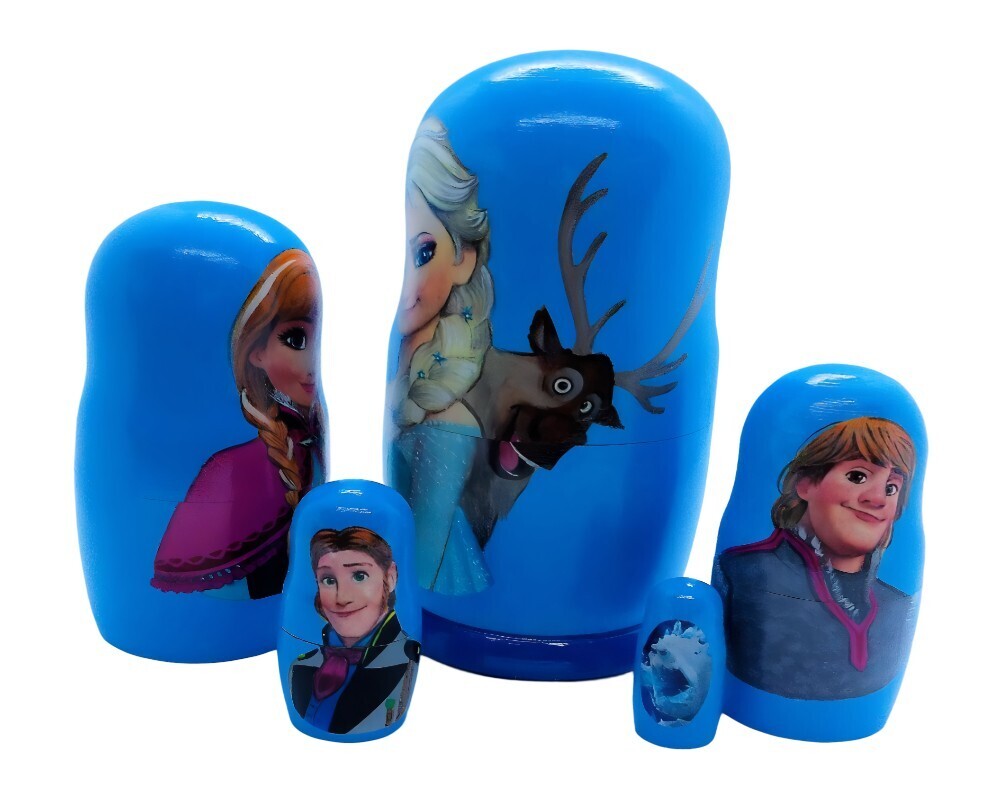 5pcs Hand Painted Frozen Russian Nesting Doll Tallest doll 7 inches tall