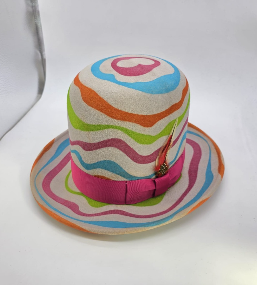 Oversized Tall Wool Bowler Hat: Erykah Bad Colorful Swirl Wool Felt Bowler Hat: