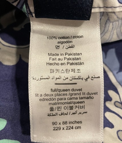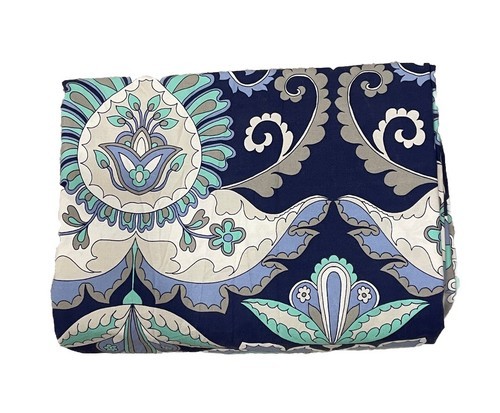 Add a touch of traditional style to your bedroom with this Pottery Barn Natalie duvet cover. The bold blue and black paisley print is perfect for adding a pop of color to your space. Made from 100% cotton, this rectangular cover is machine washable and tumble dryable for easy care. It fits queen size beds and comes with a set of buttons for easy closure.