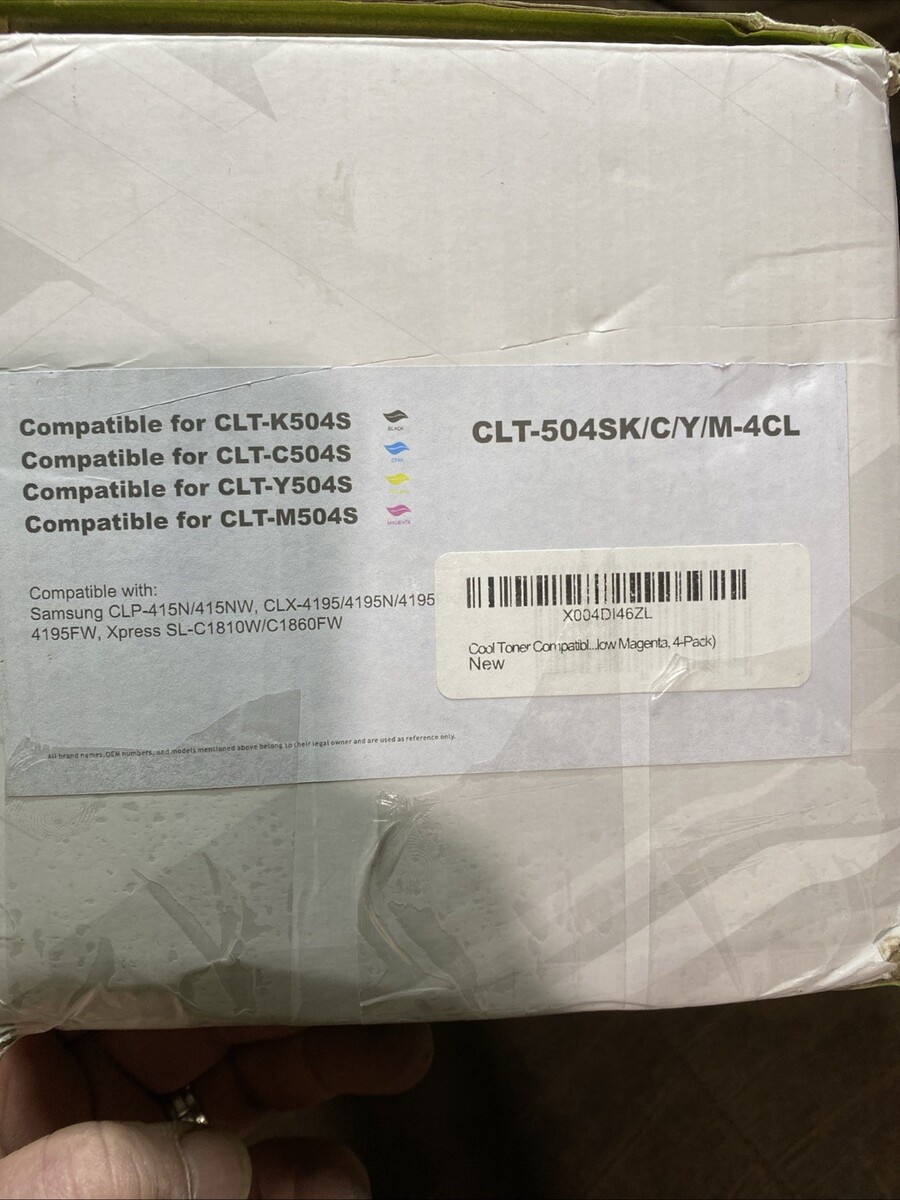 The 4 Pack for Samsung CLT-K504S 504S Toner is a set of compatible toner cartridges designed specifically for Samsung printers. These cartridges are suitable for models such as the Samsung CLX-4195, CLP-415N, and Xpress SL-C1810W. The pack includes colors like cyan, yellow, magenta, and black, providing a variety of options for different printing needs. With a page output of up to 2,500 pages for black and 1,800 pages for color, this set offers long-lasting and high-quality printing capabilities. Additionally, the Cool Toner brand ensures reliability and compatibility with your Samsung printer, backed by a 3-year manufacturer warranty.