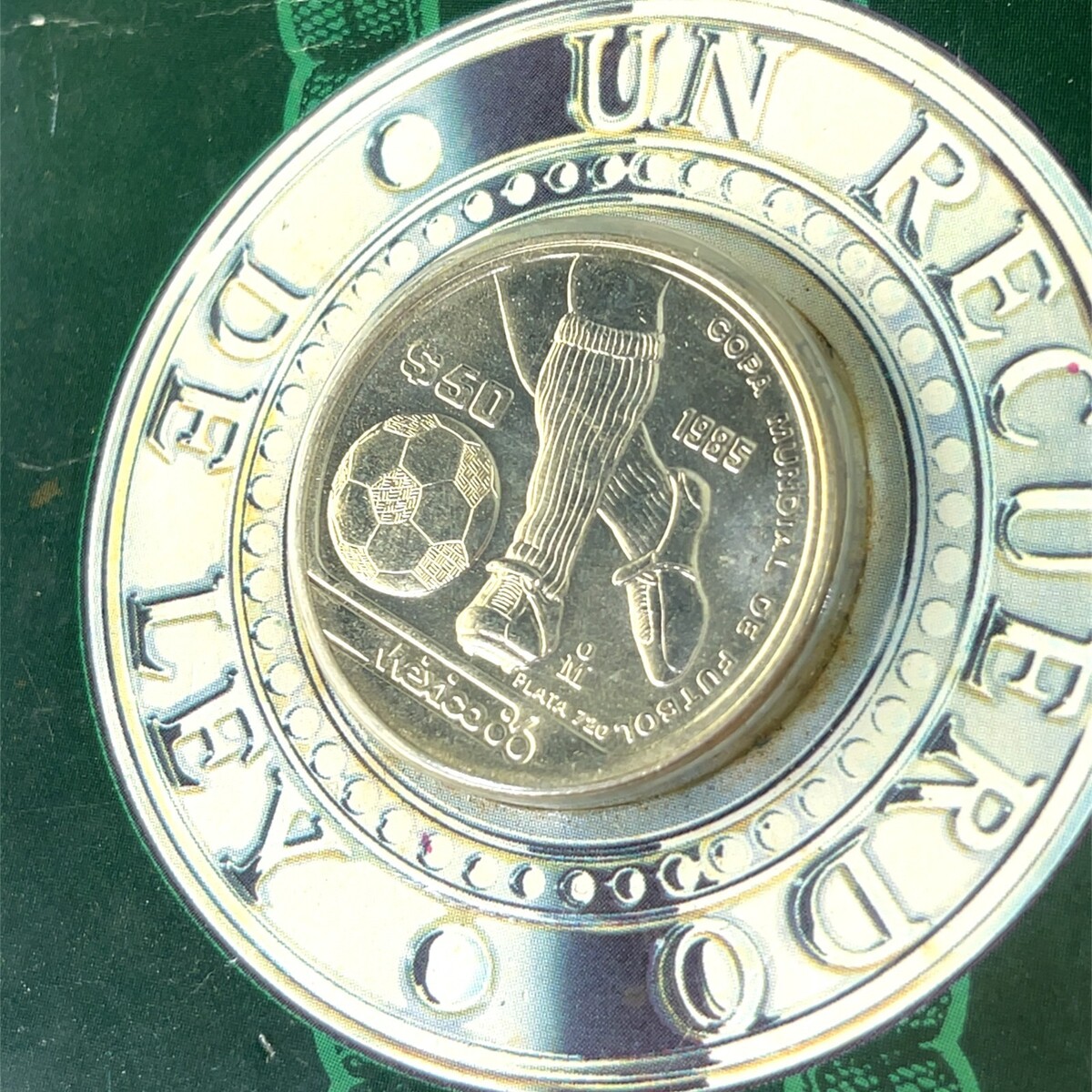 1985 Tesoros Del Mundial 60 Pesos 720 Silver Coin in Original Packaging
