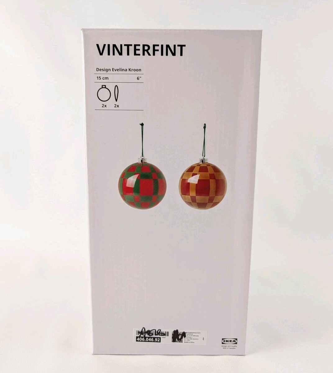 IKEA VINTERFINT Ornament 6" Red Green Set of 2 Christmas Tree Baubles 406.046.92