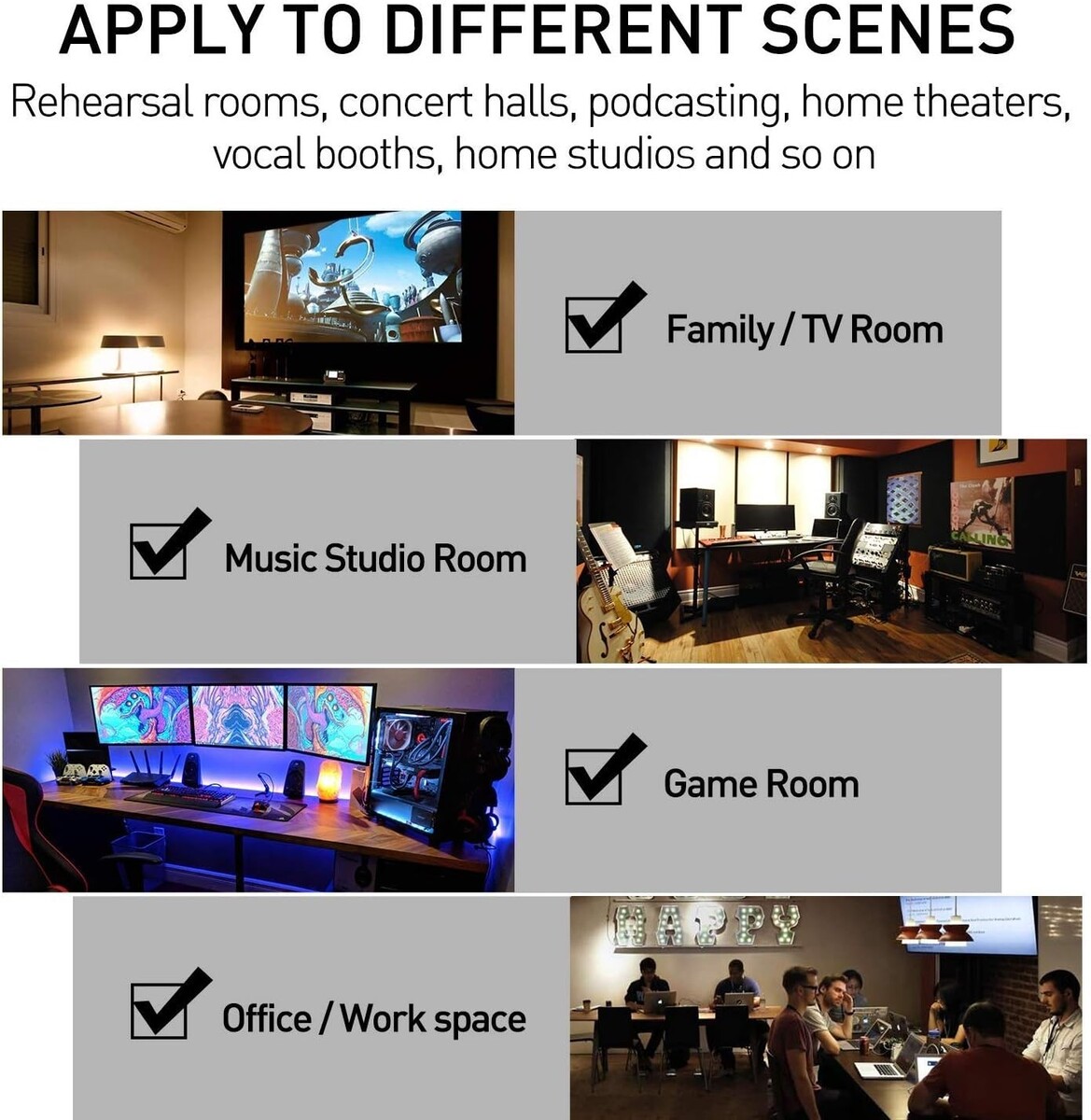 Wide applications for studios, offices, and vocal booths.